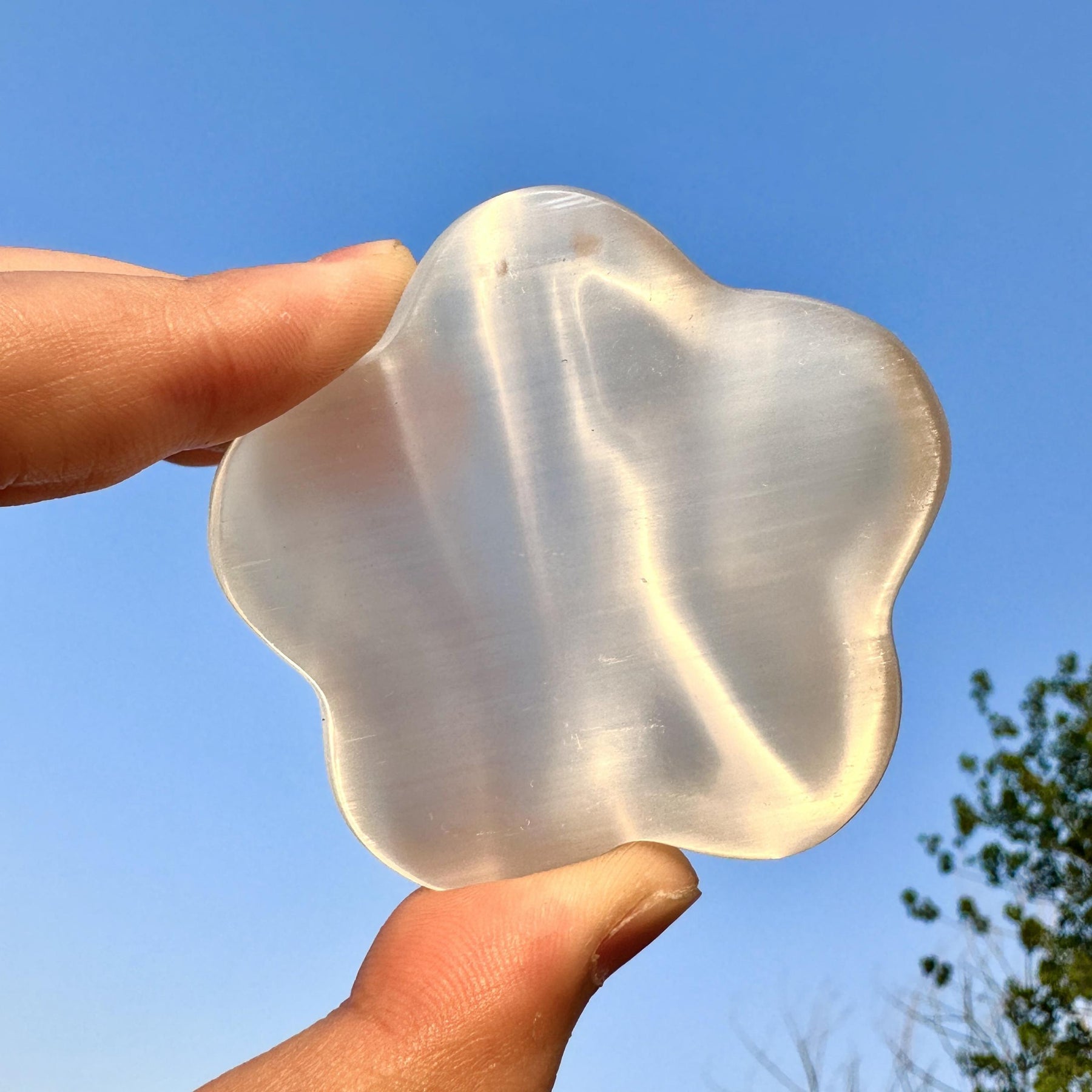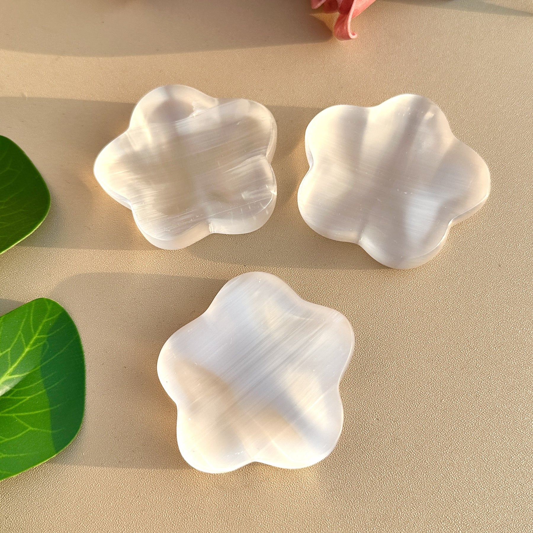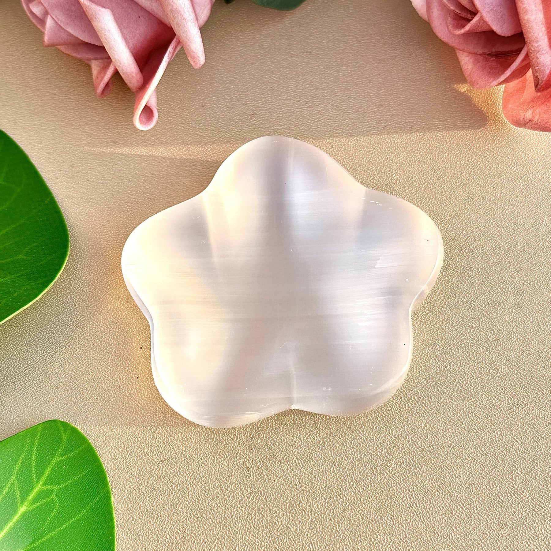 This beautiful flower-shaped Selenite bowl is hand-carved and polished to perfection, making it a unique crystal healing stone art piece. It's ideal for interior decoration and makes a wonderful collectible gift.