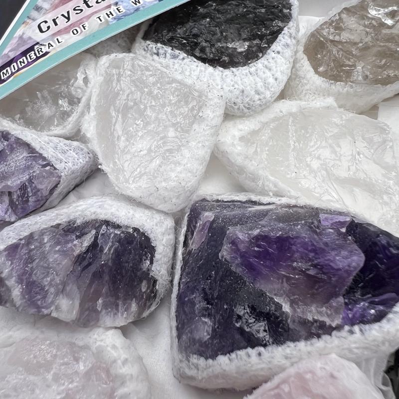 • Assorted mix of amethyst, rose quartz, clear quartz, and smoky quartz