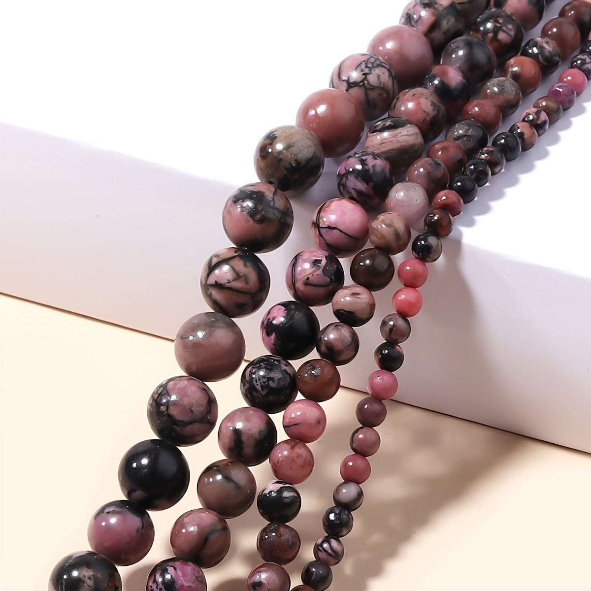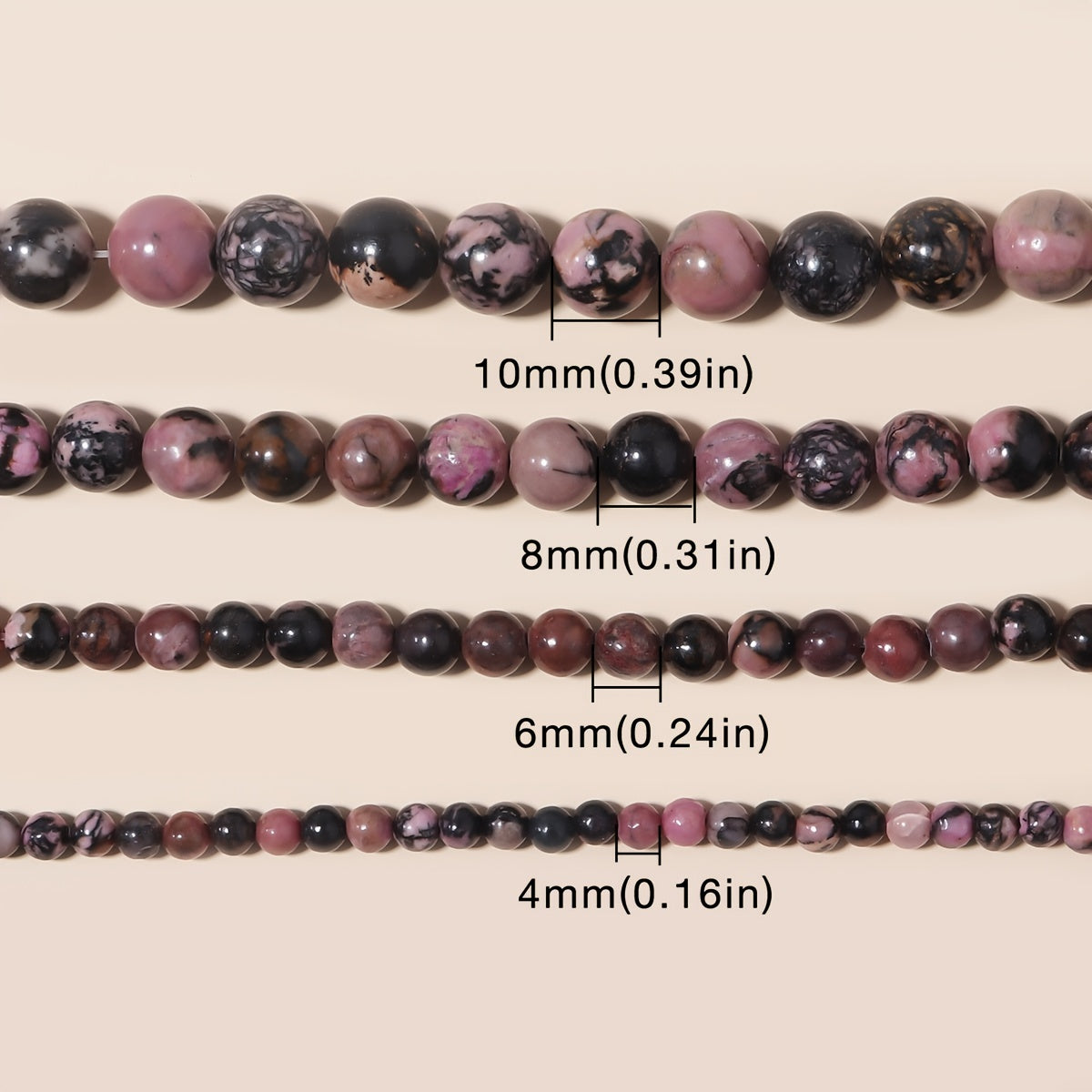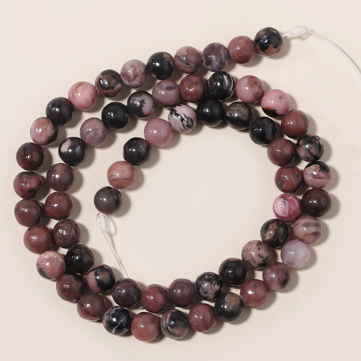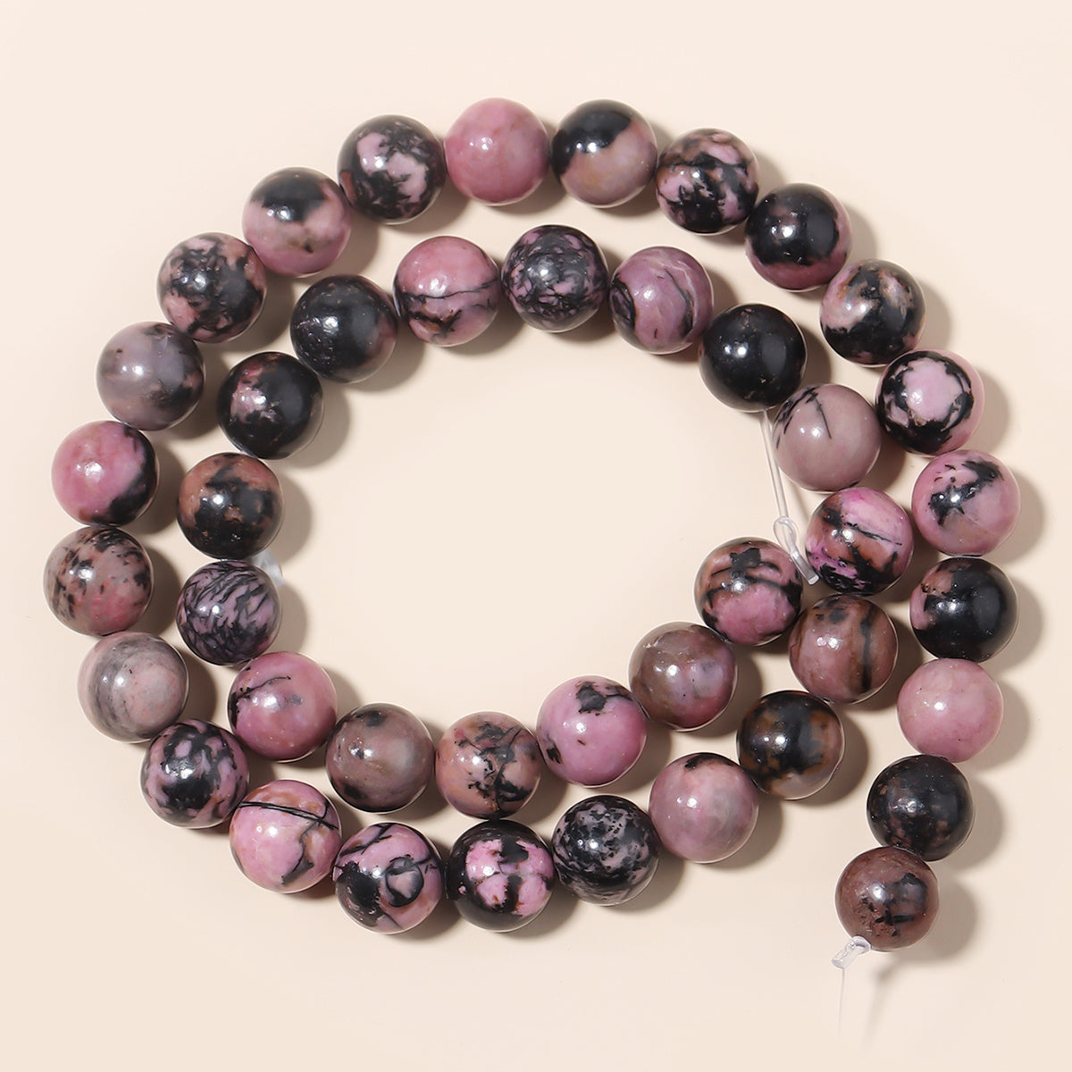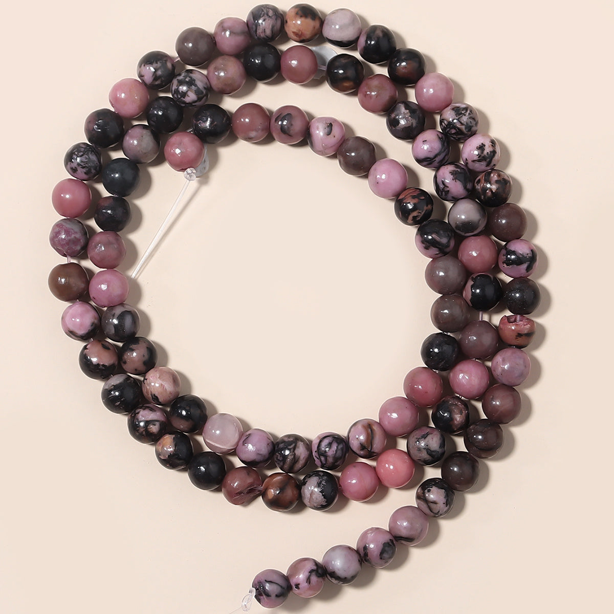 These natural rhodonite beads are perfect for creating unique jewelry pieces. Use them in bracelets, necklaces, or other needlework projects.