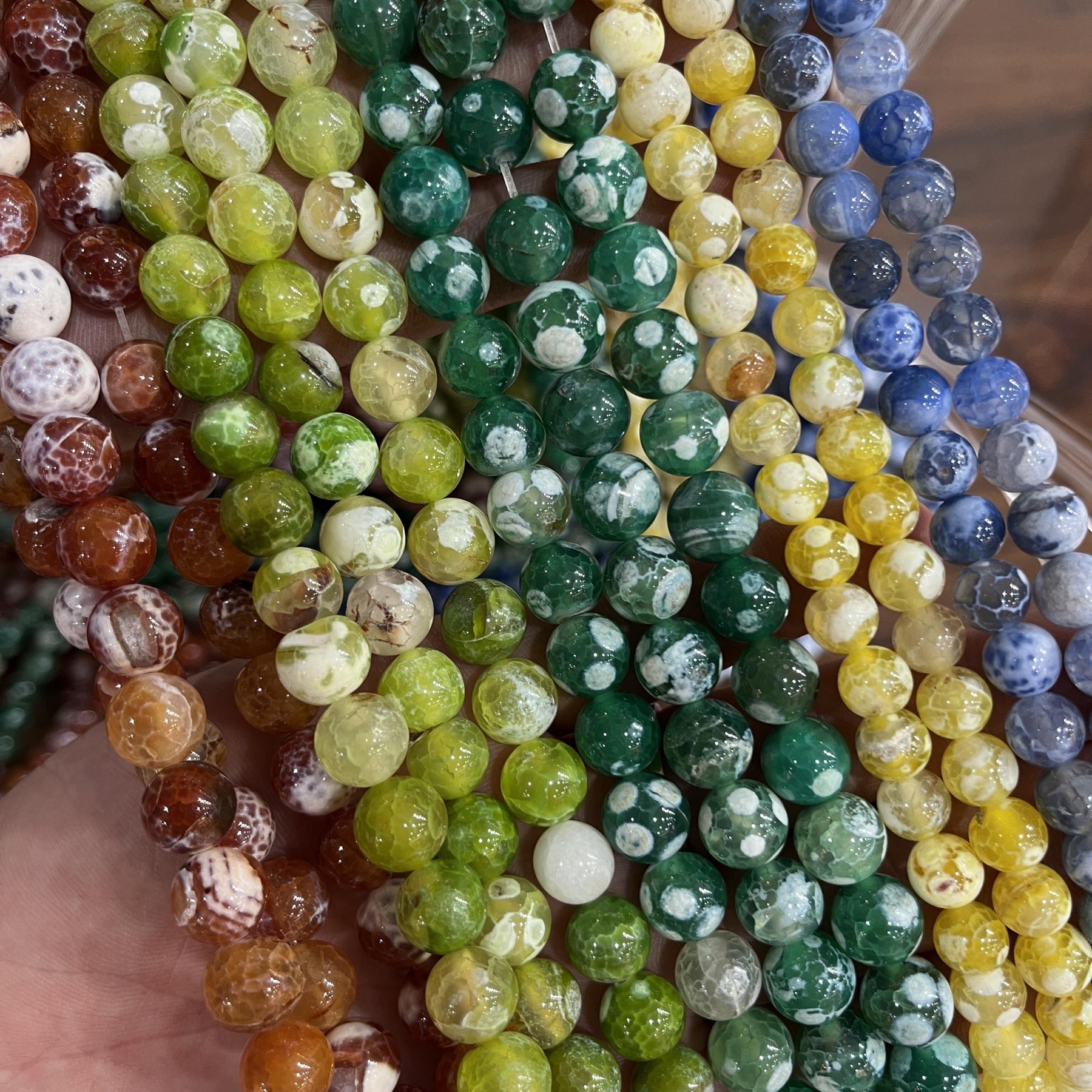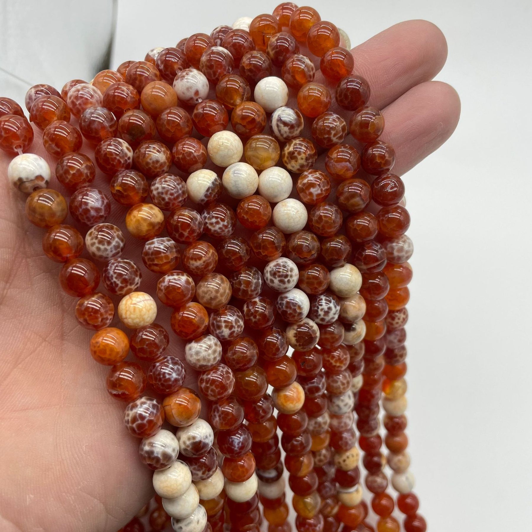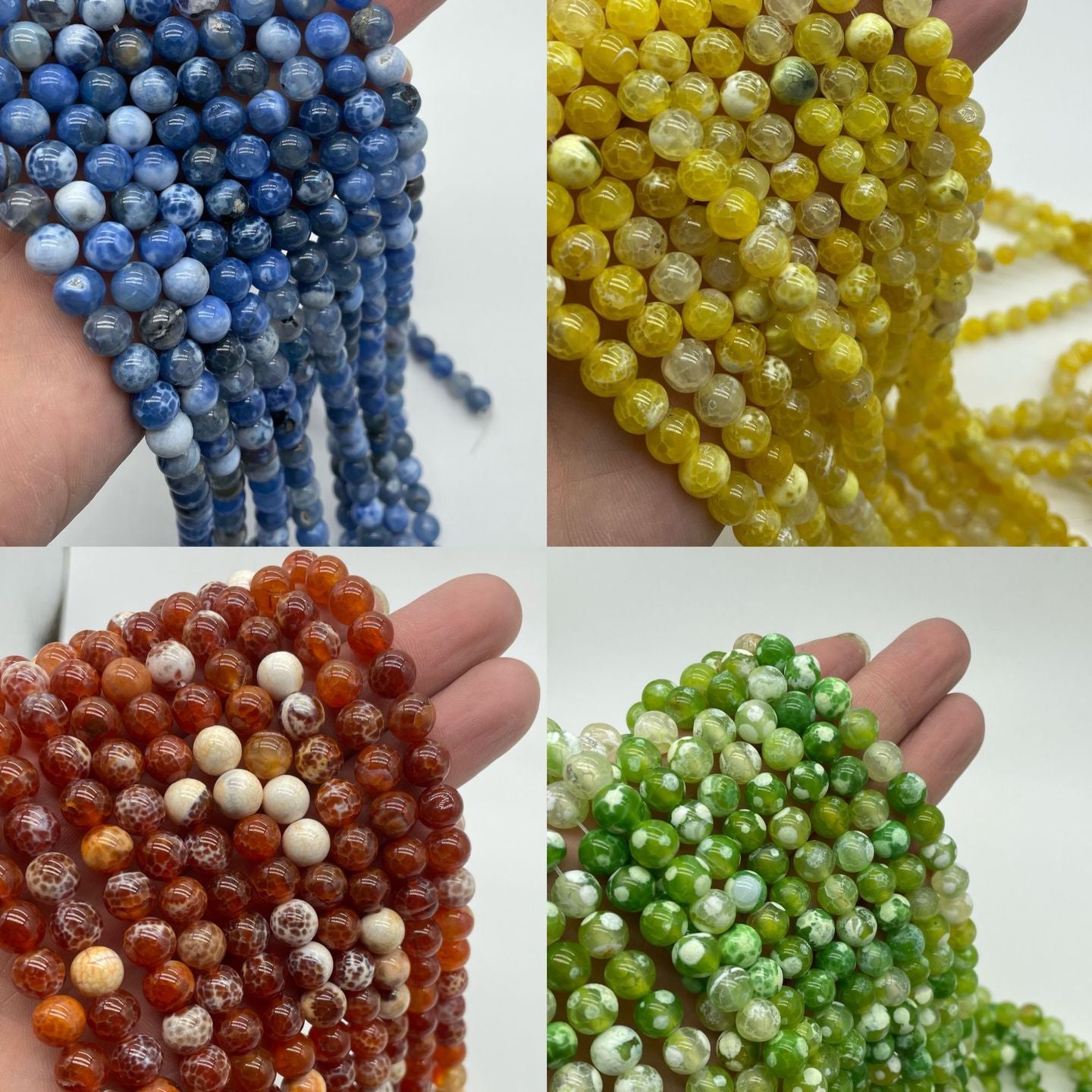 Create stunning jewelry pieces with this collection of Ice Fire Agate beads. Perfect for necklaces, earrings, and bracelets.