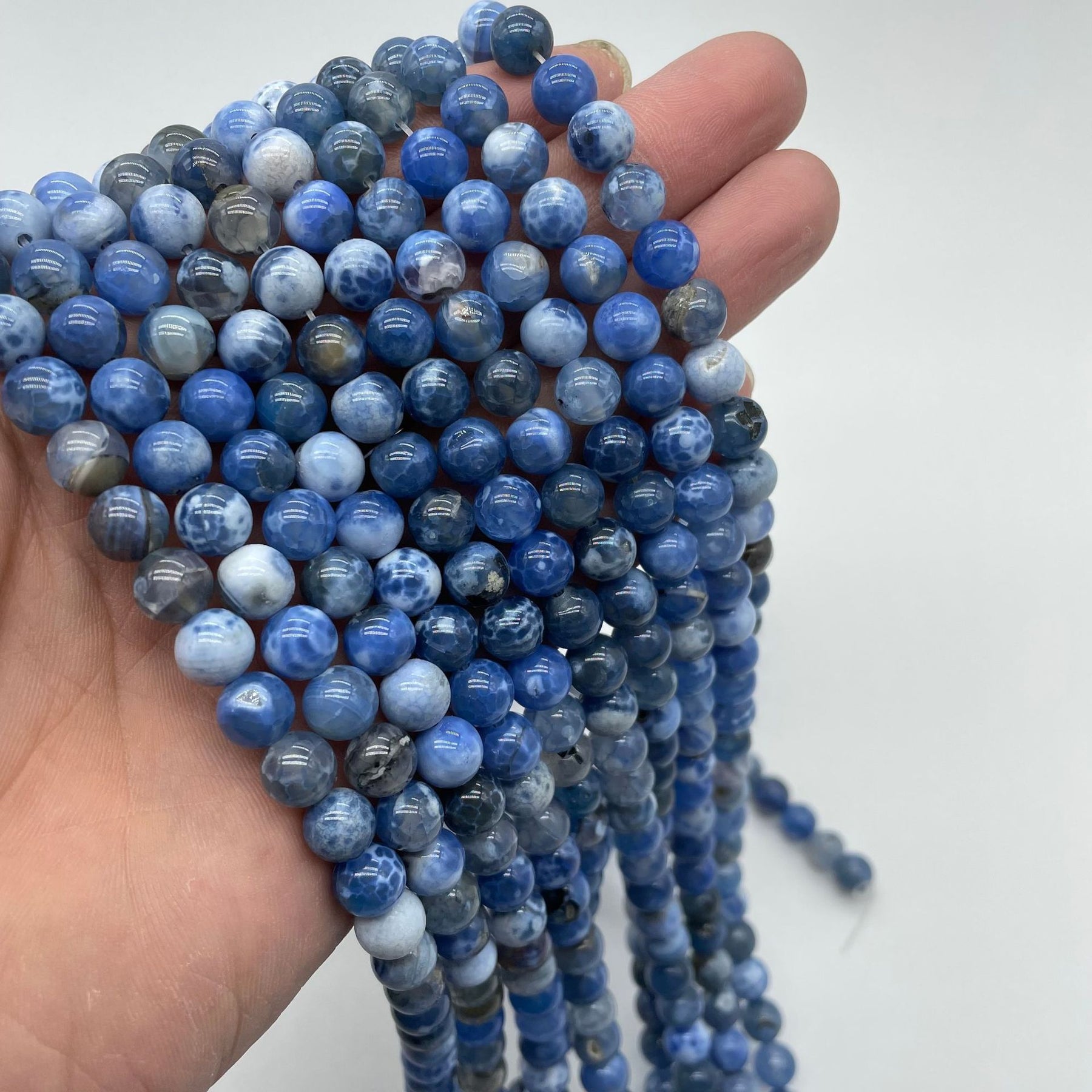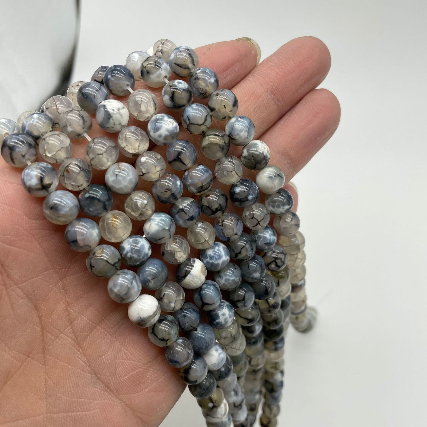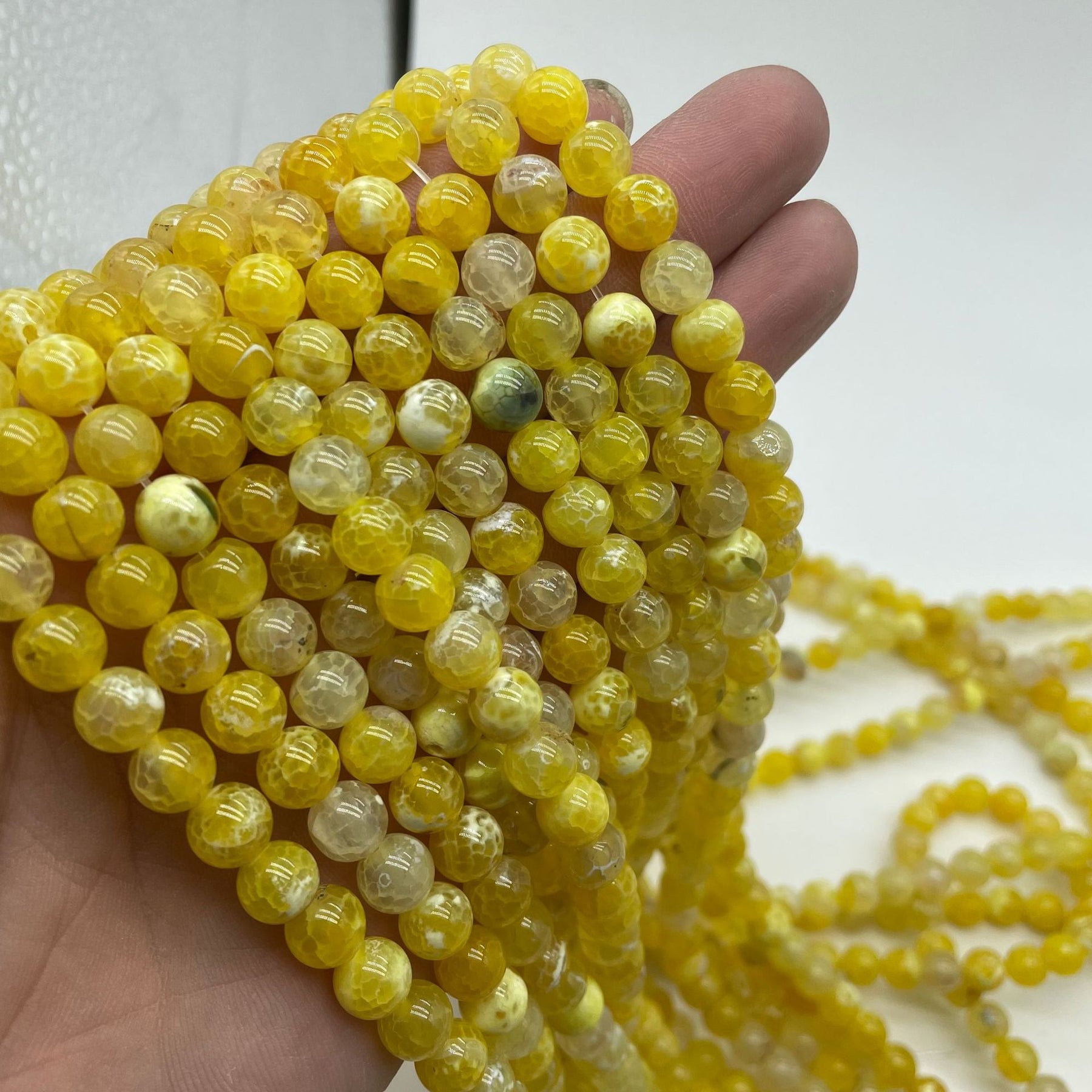 Create stunning jewelry pieces with this collection of Ice Fire Agate beads. Perfect for necklaces, earrings, and bracelets.