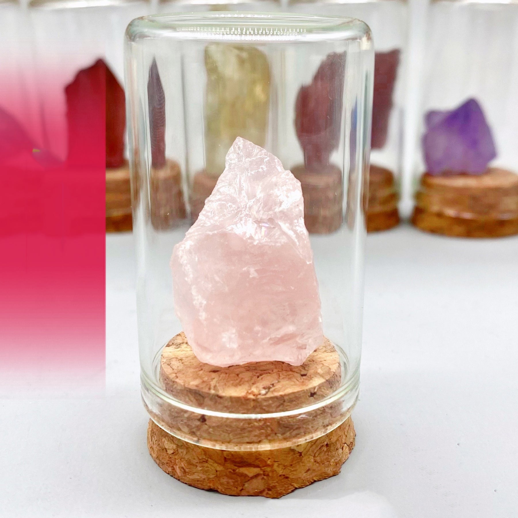 Beautiful and unique natural stone wishing bottle with crystal raw stone drifting bottle ore specimen decoration.