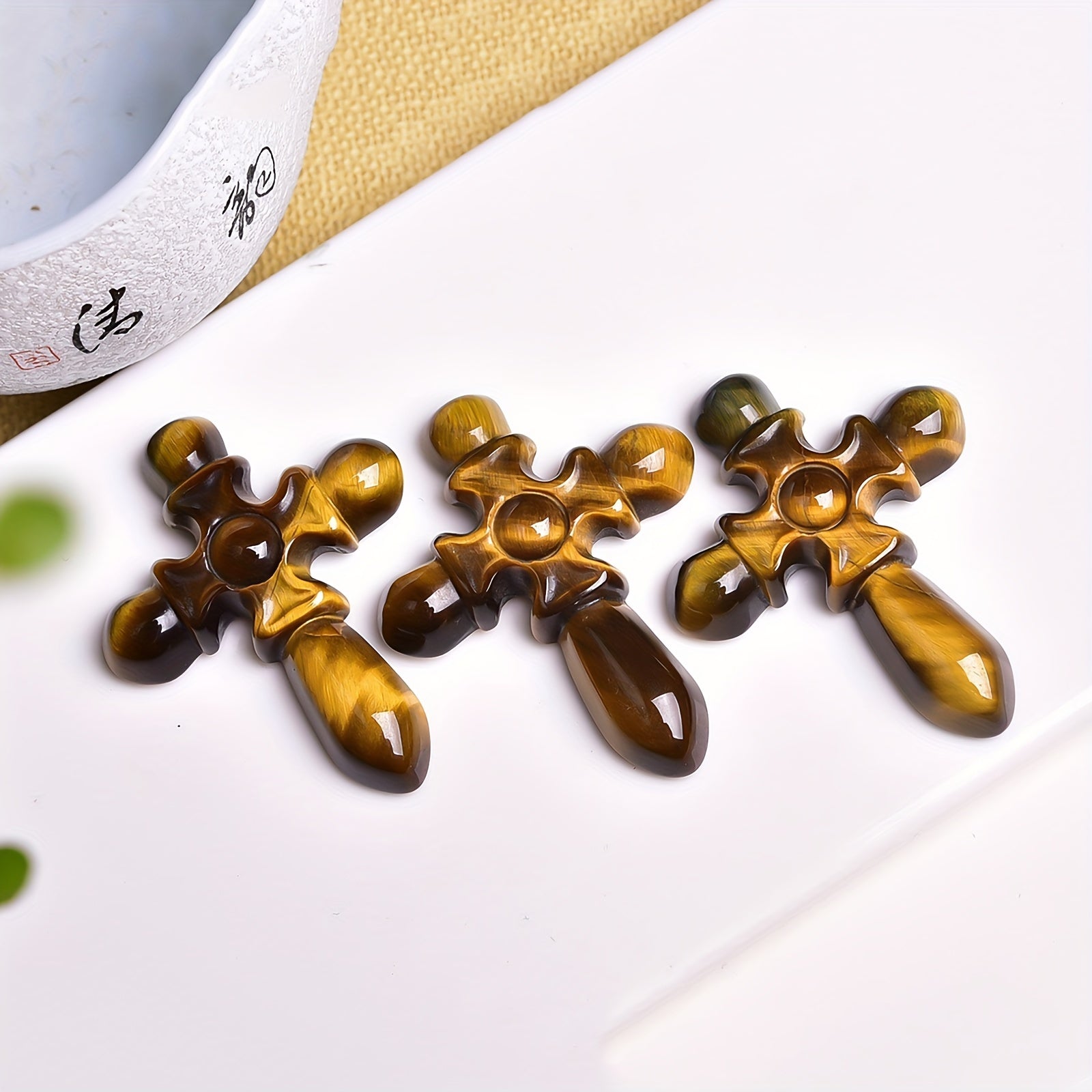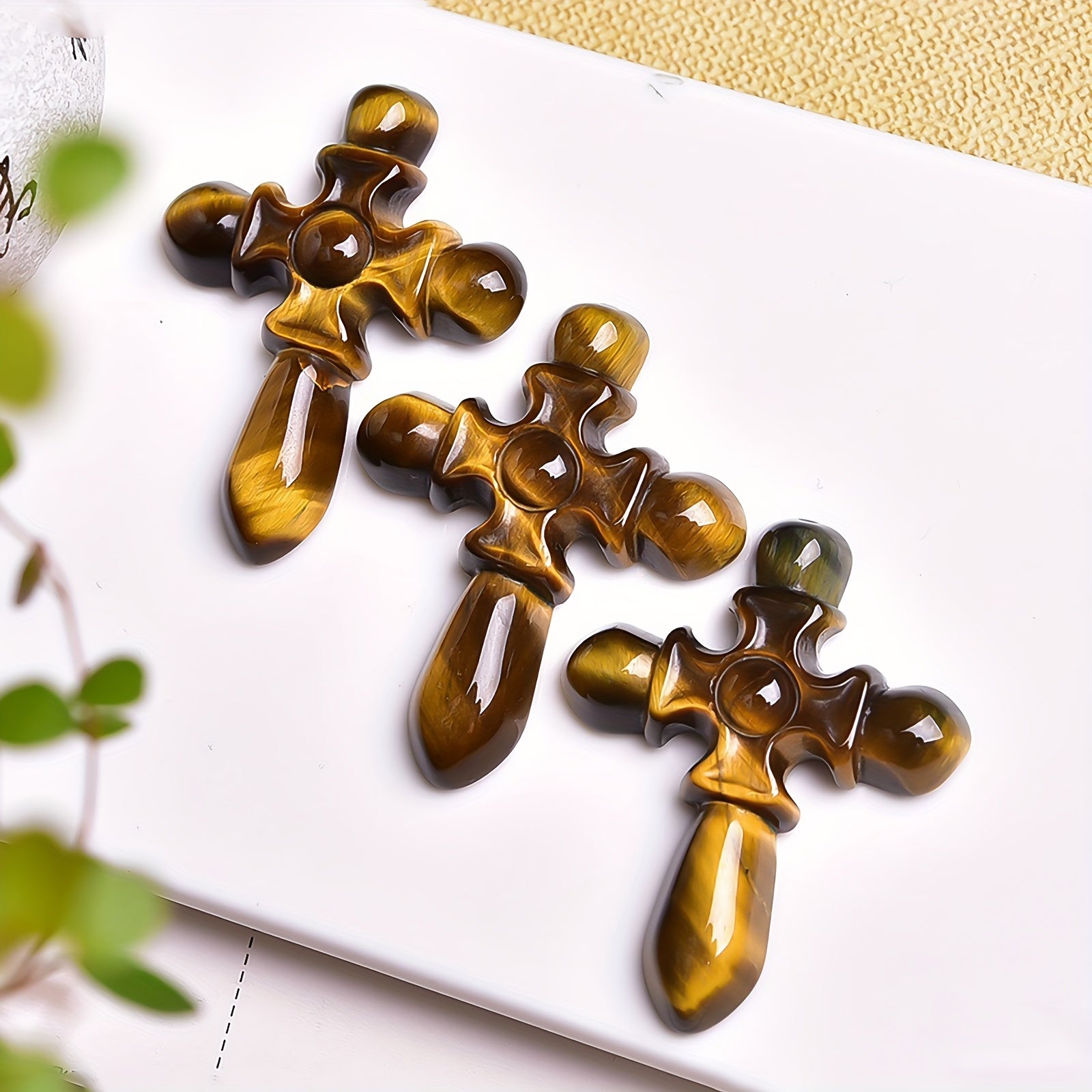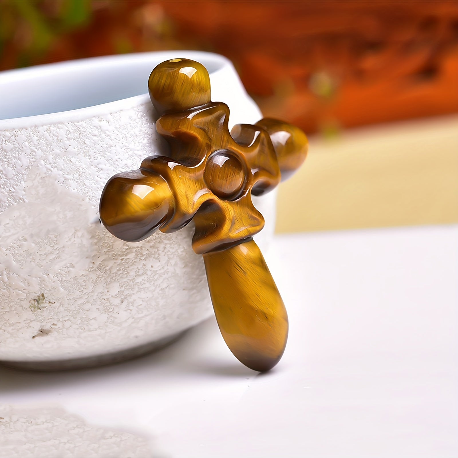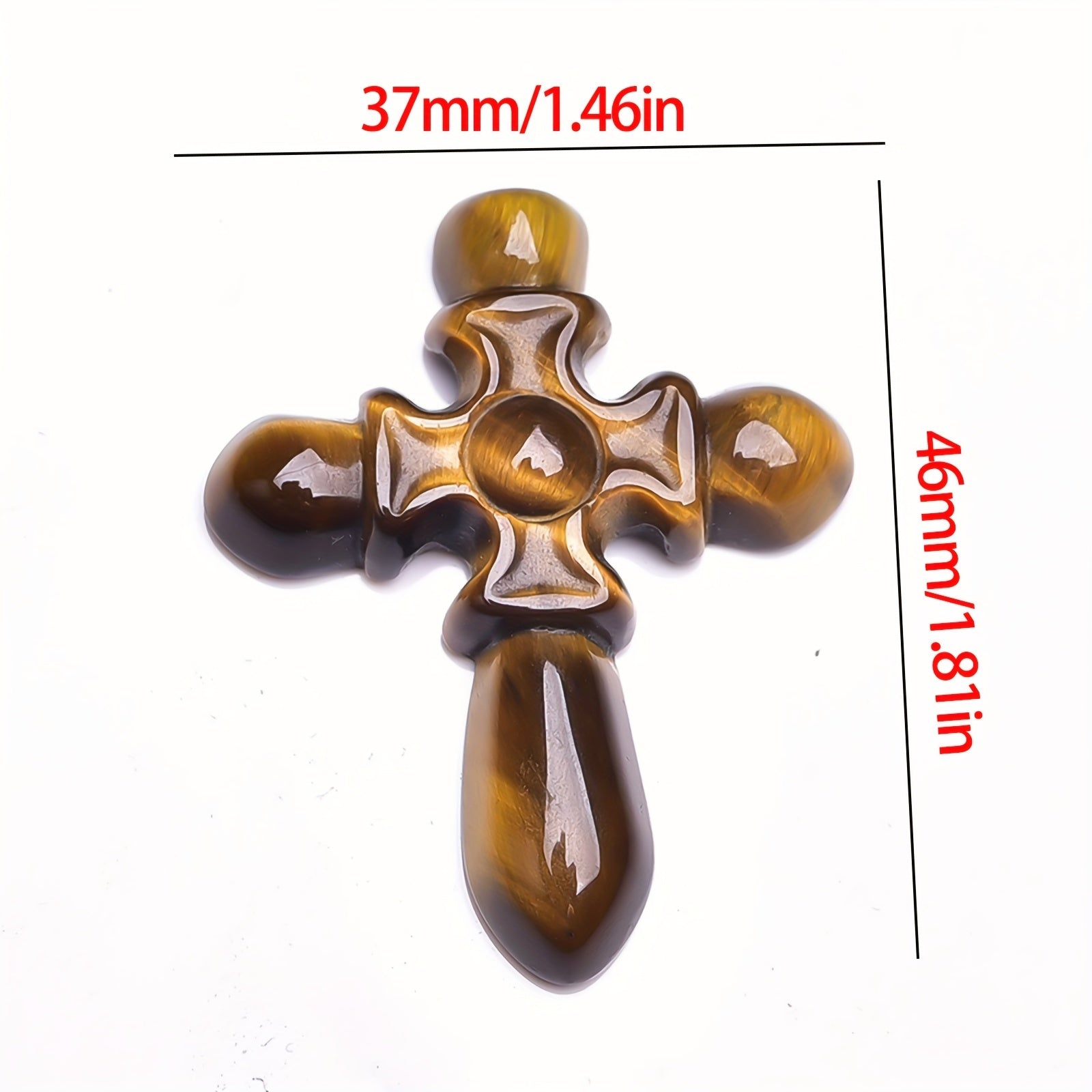 Natural Tiger Eye Stone Cross Pendant Courage Charm Necklace