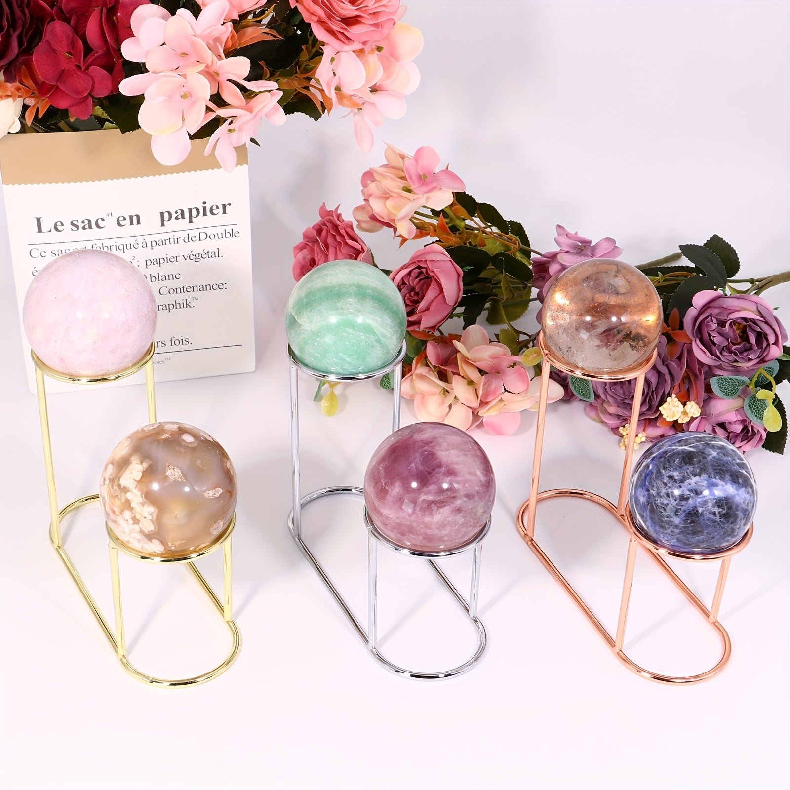 This crystal ball holder is a beautiful display stand ideal for showcasing your favorite crystal balls. It adds a touch of elegance to any room.