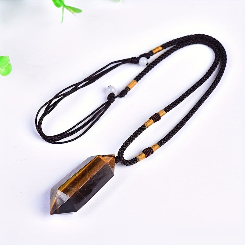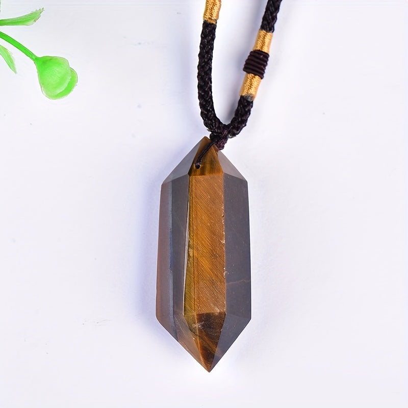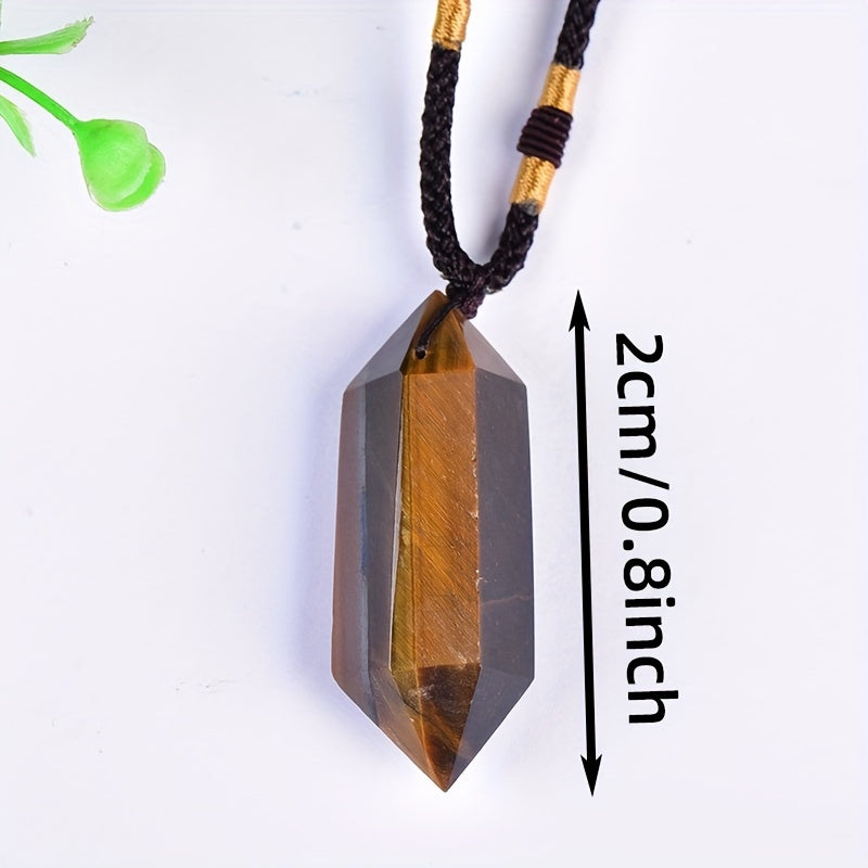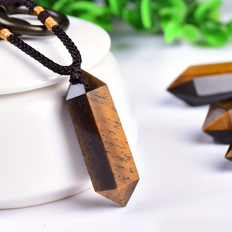 This stunning pendant features a 50mm Yellow Tiger's Eye crystal pillar with a hexagonal rough stone polished finish. Perfect for everyday wear or special occasions.