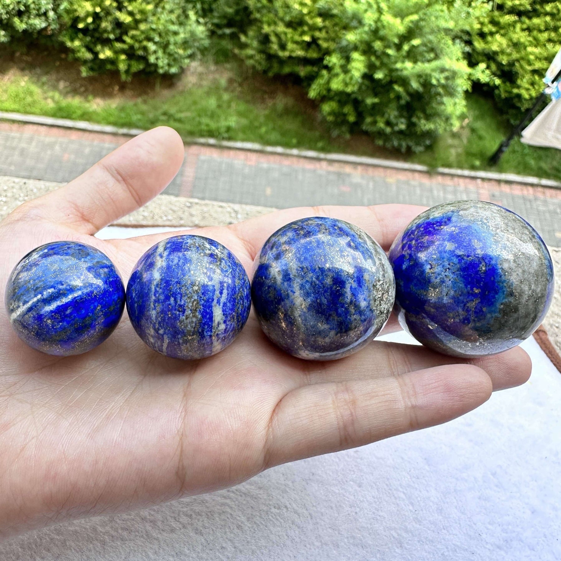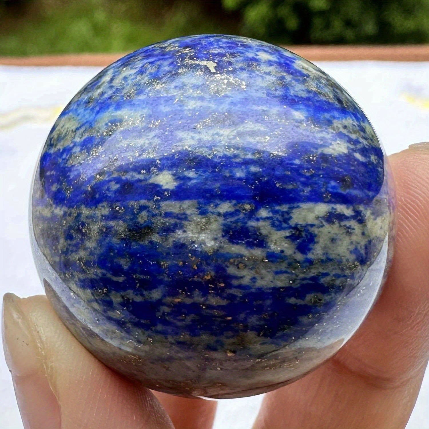 This royal gemstone sphere is crafted from lapis lazuli, known for enhancing wisdom and inner truth.