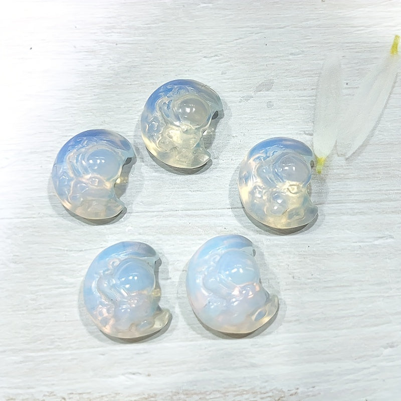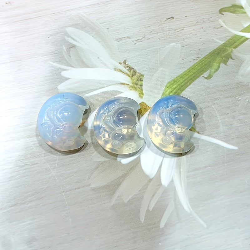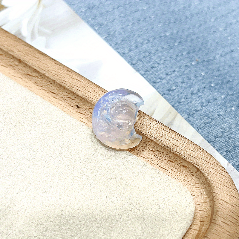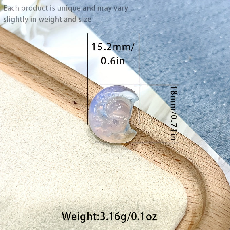 Enhance your space decor with this stunning Opalite carving of an astronaut sitting on the moon. Opalite is a powerful healing stone that promotes peace and tranquility.