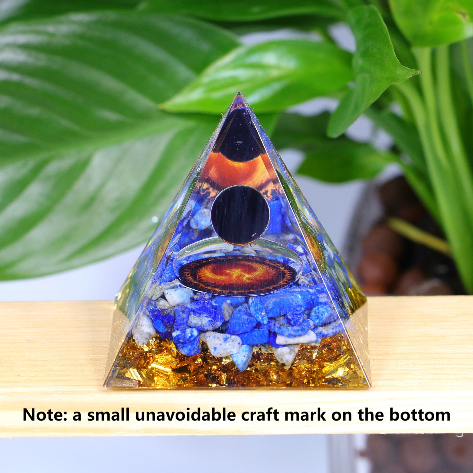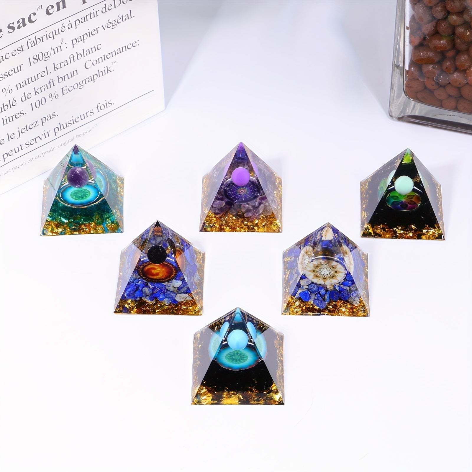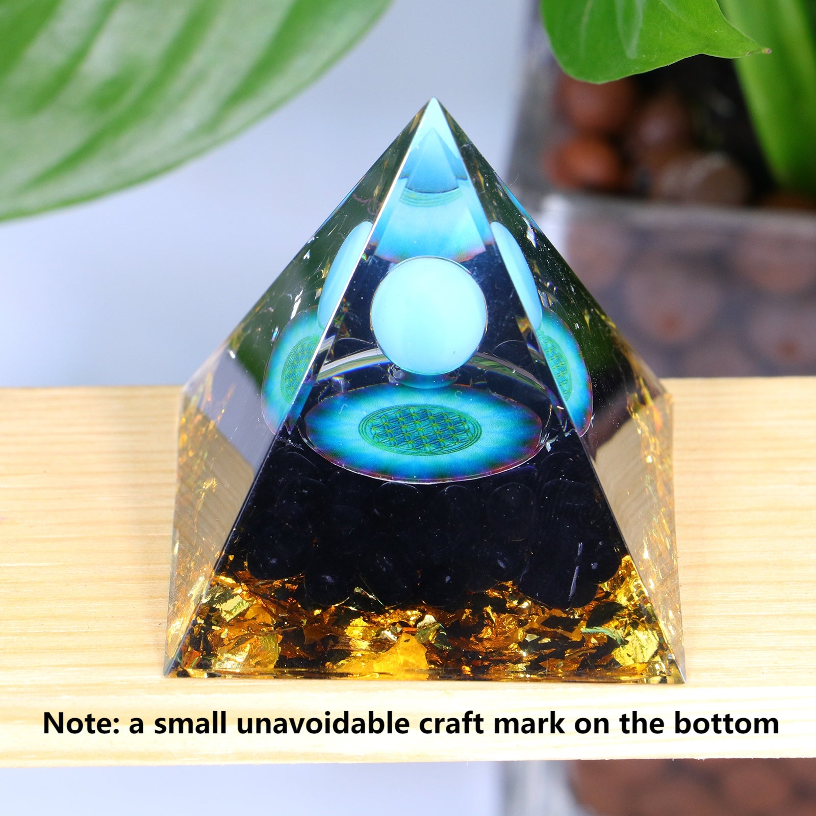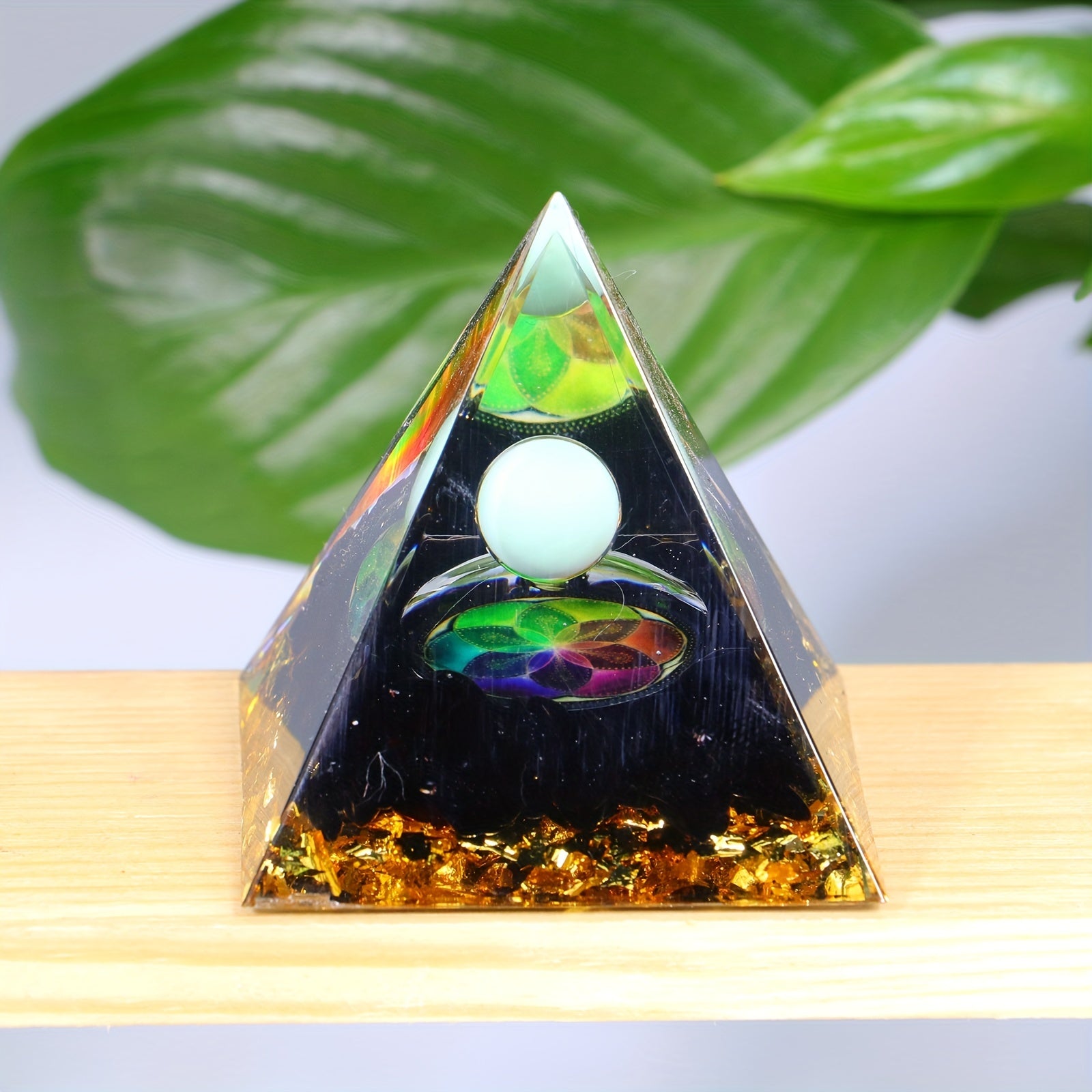 Enhance positivity and protection with this orgone pyramid featuring an amethyst crystal ball. Ideal for stress reduction, healing, meditation, and overall well-being.