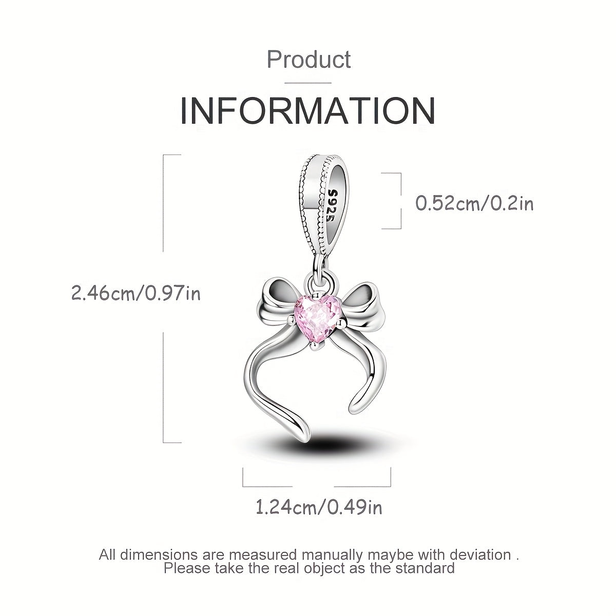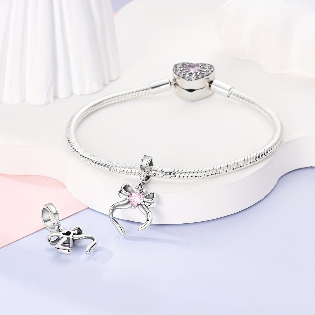 This charming set features a pink heart pendant bracelet and necklace adorned with a lovely bow made of S925 sterling silver and set with cubic zirconia. Perfect to add a touch of elegance to any outfit.