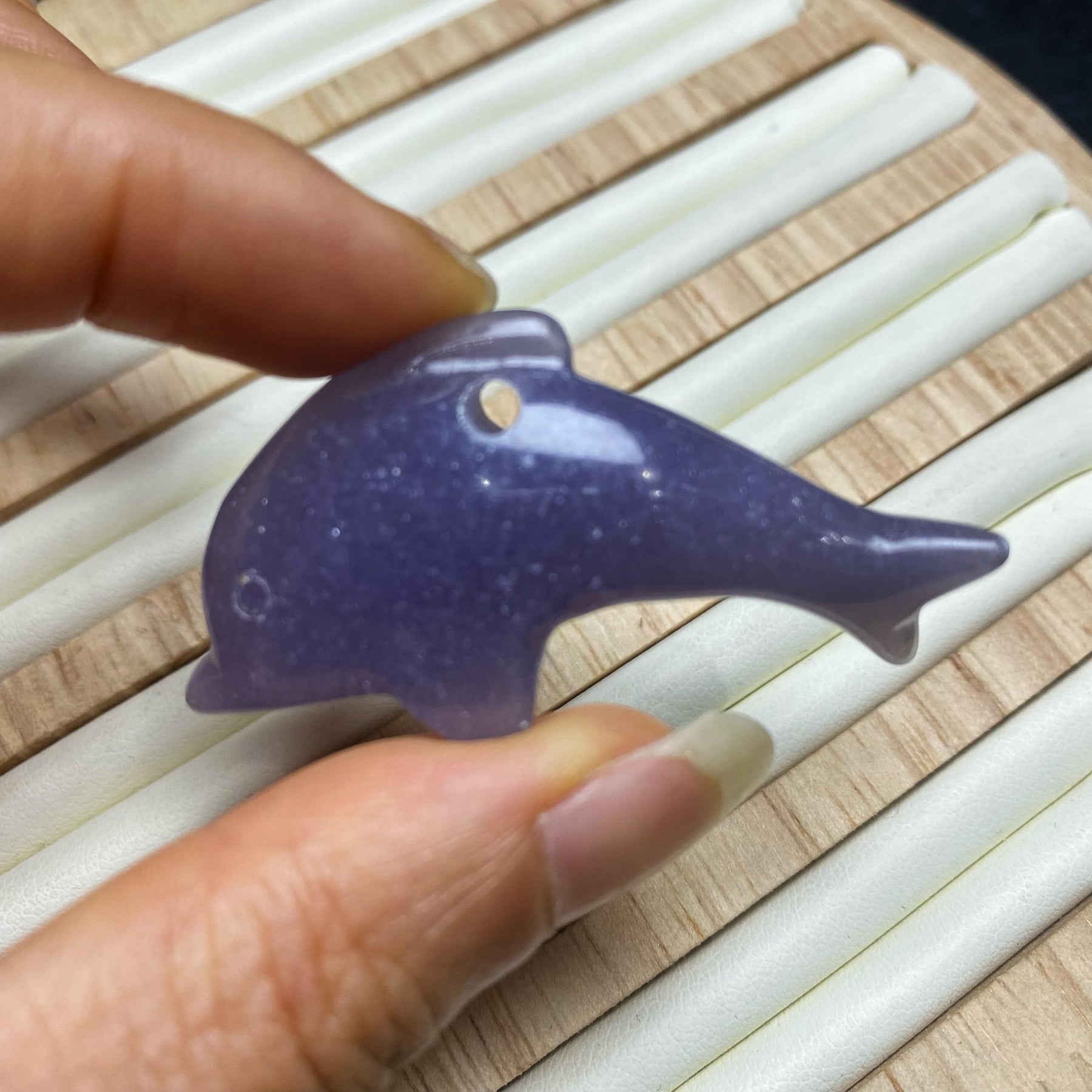 Enhance your DIY projects with this adorable purple dolphin pendant. Perfect for creating unique accessories.
