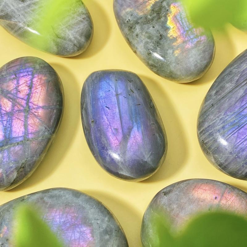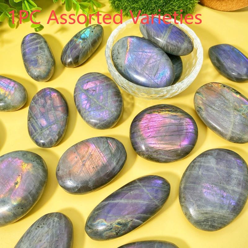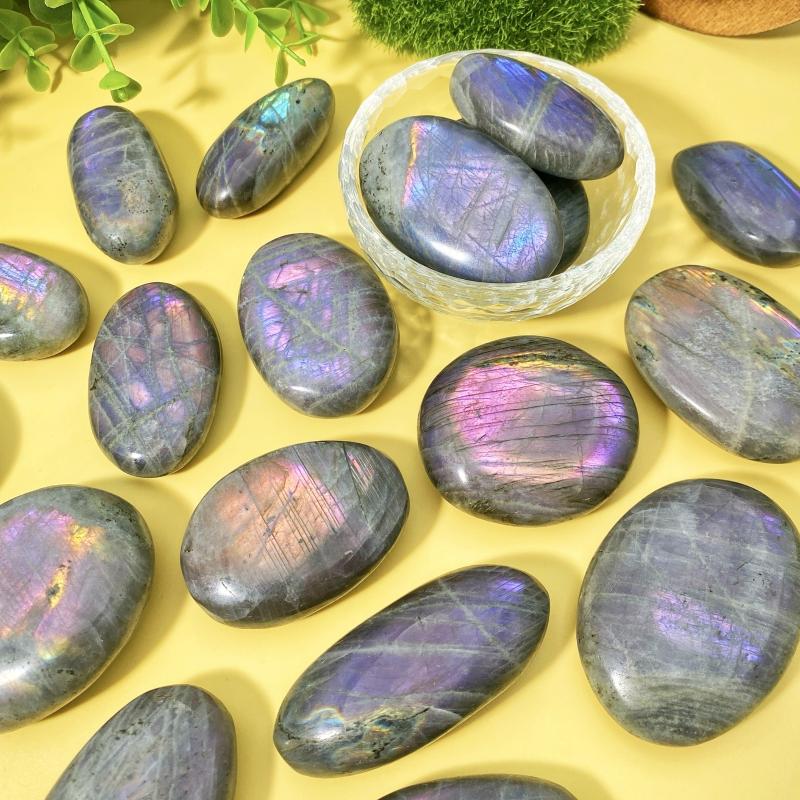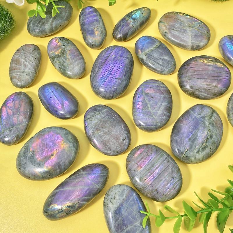 This exquisite labradolite palm stone features a beautiful purple hue with natural stone carving, making it a unique and eye-catching piece of jewelry. It is a perfect gift for birthdays, Halloween, Christmas, or any special occasion for women or girlfriends.