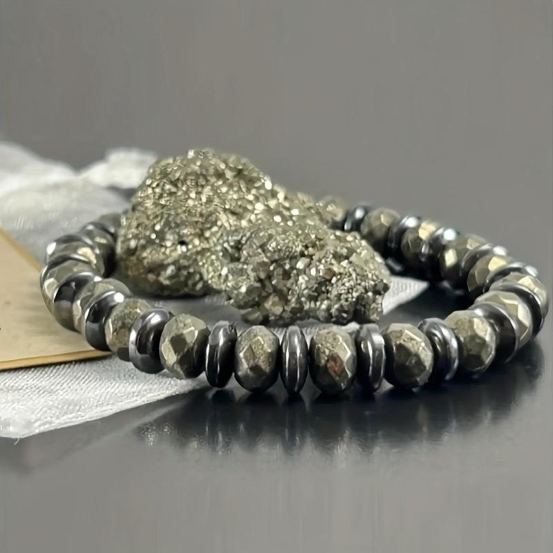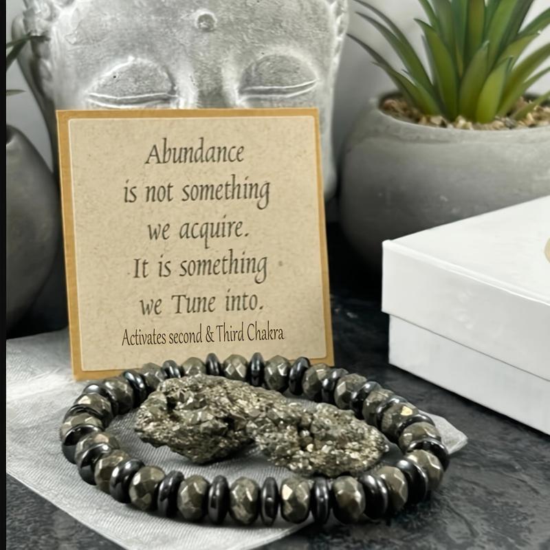 This bracelet features pyrite and hematite beads that are believed to attract wealth and abundance while providing grounding and protection. It is a spiritual chakra necklace suitable for both men and women with a bohemian style.