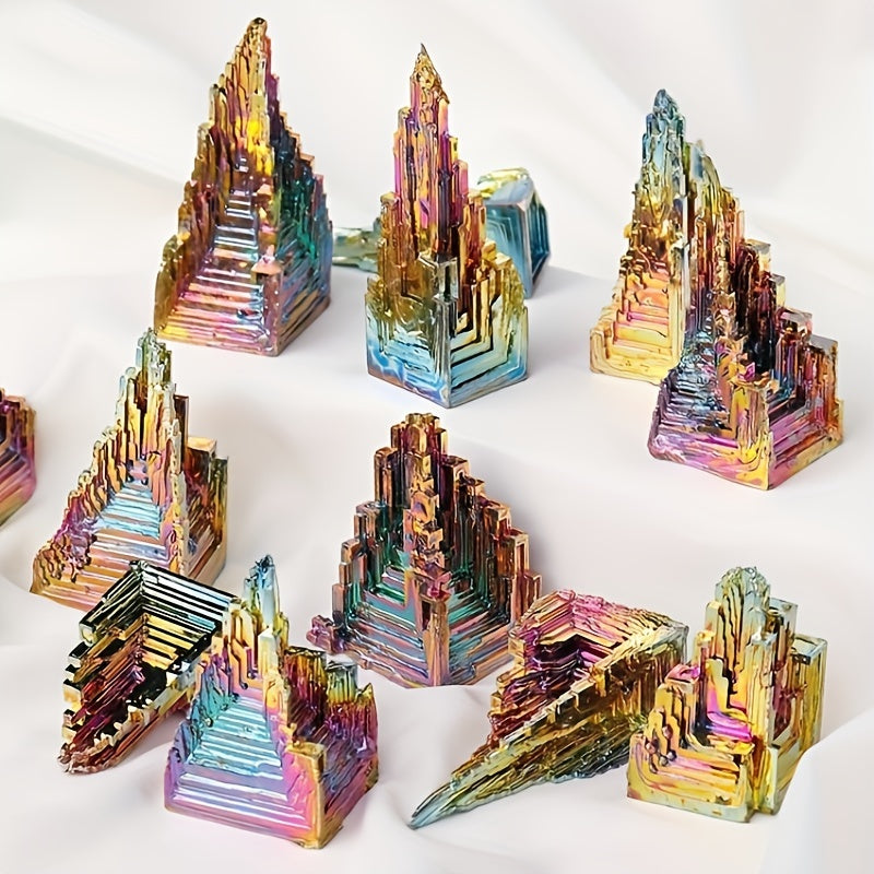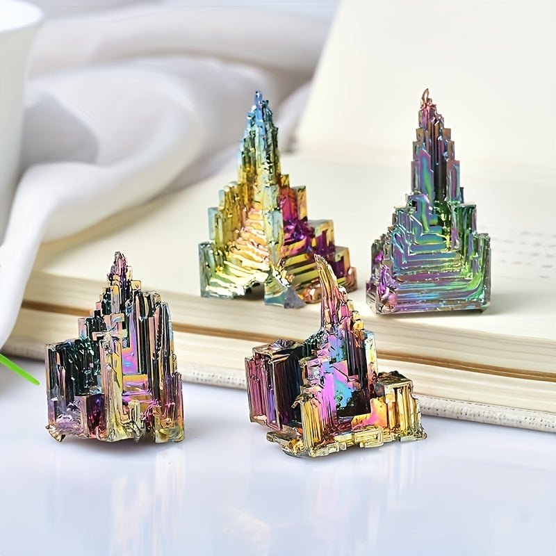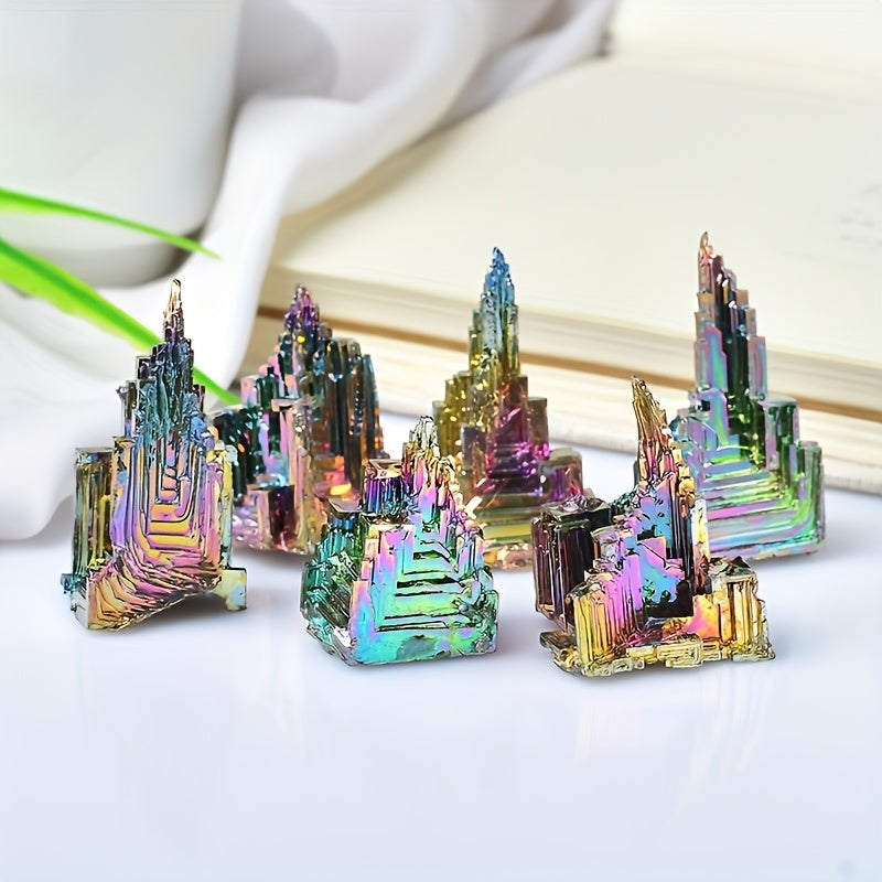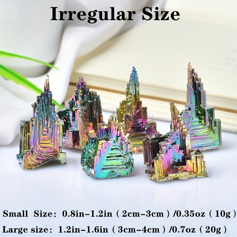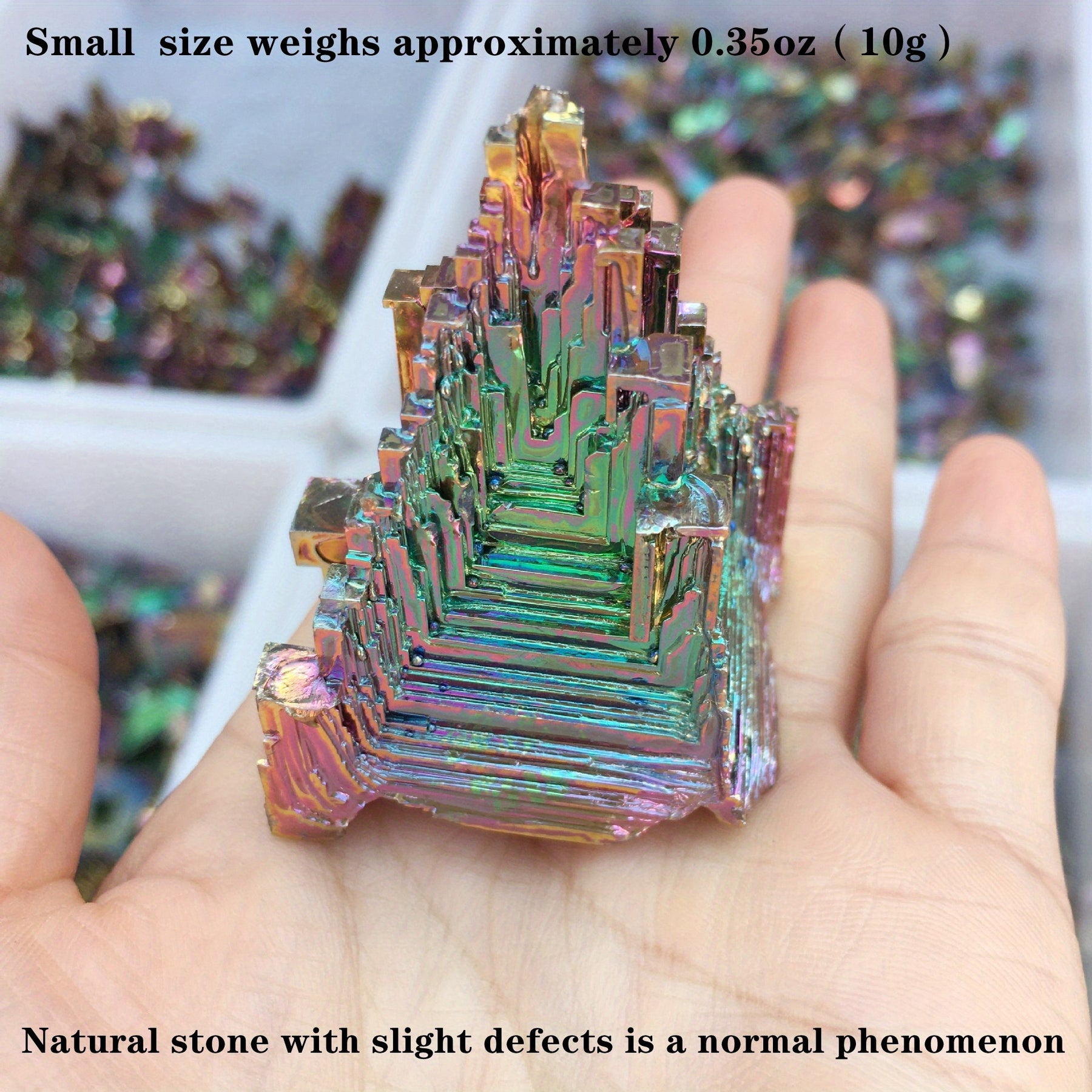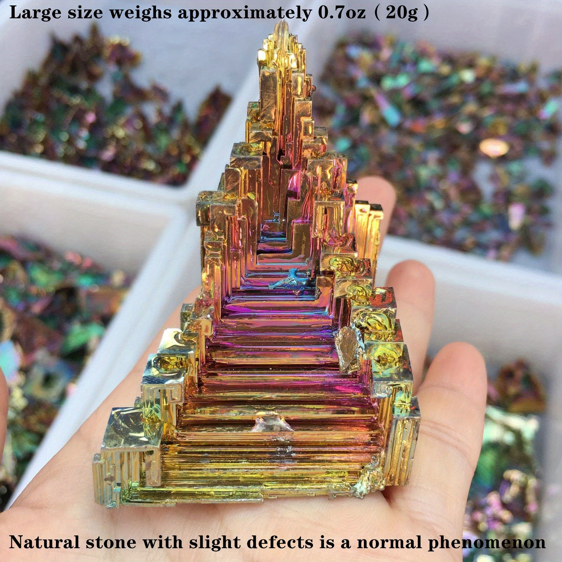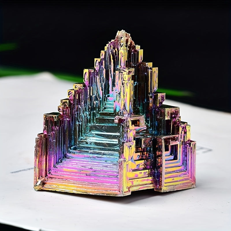 Enhance your spiritual growth with this brilliant rainbow bismuth tower crystal pyramid. Perfect for reiki healing, meditation, and as a decorative collection piece.