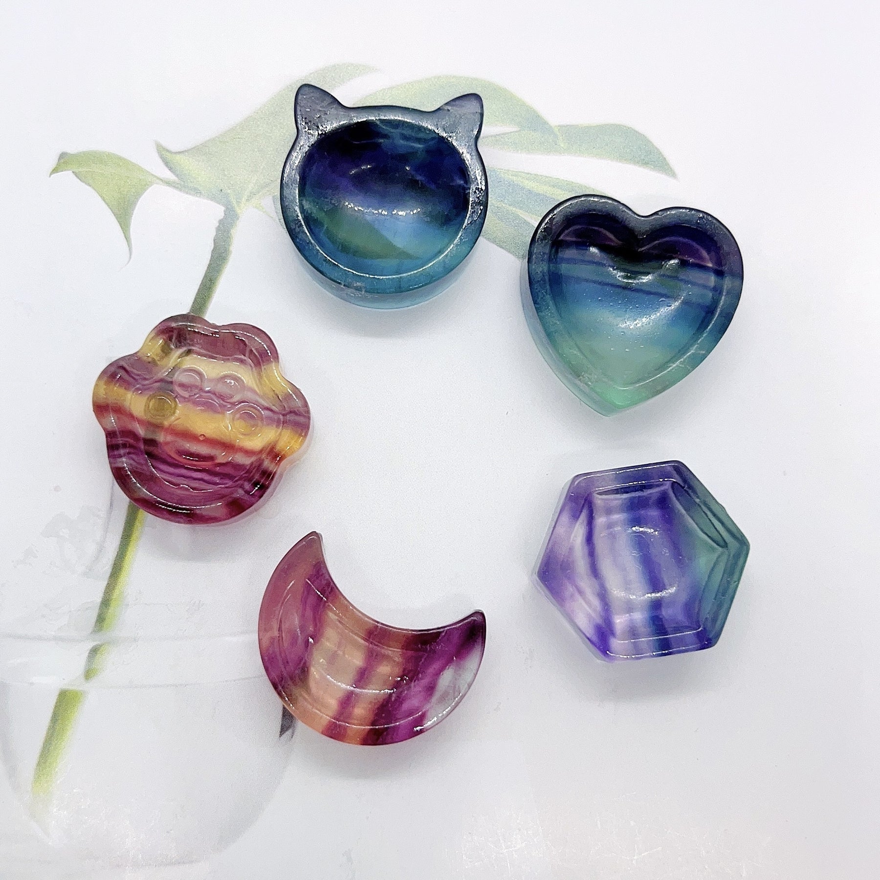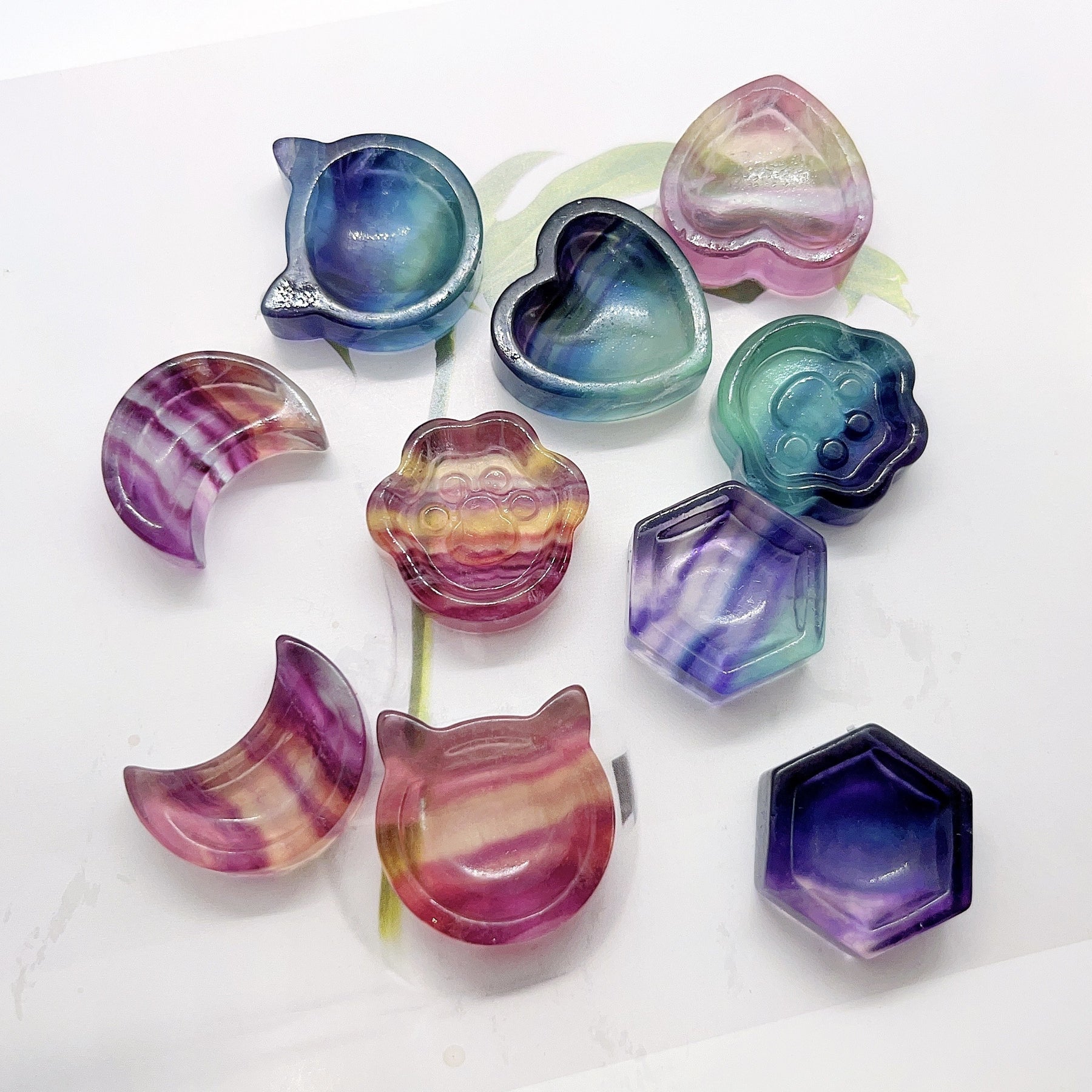 This Rainbow Fluorite Bowl is a beautiful healing crystal made of natural stone. It is a very nice charm to have in your collection.