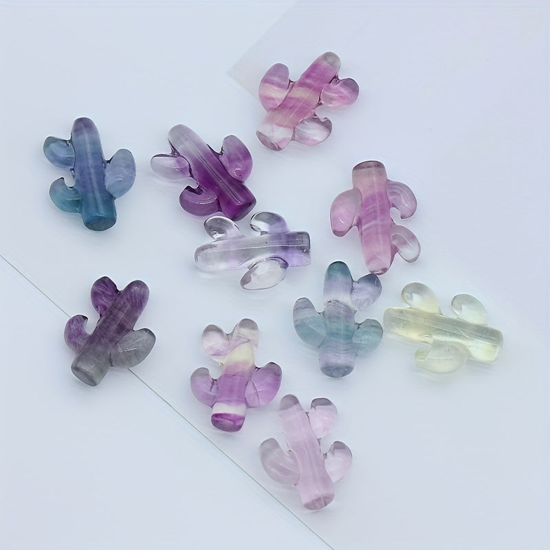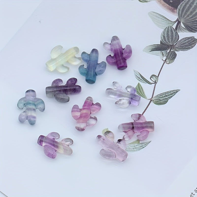 Enhance your space with this lovely rainbow fluorite cactus carving crystal. It radiates positive energy and promotes healing and harmony.