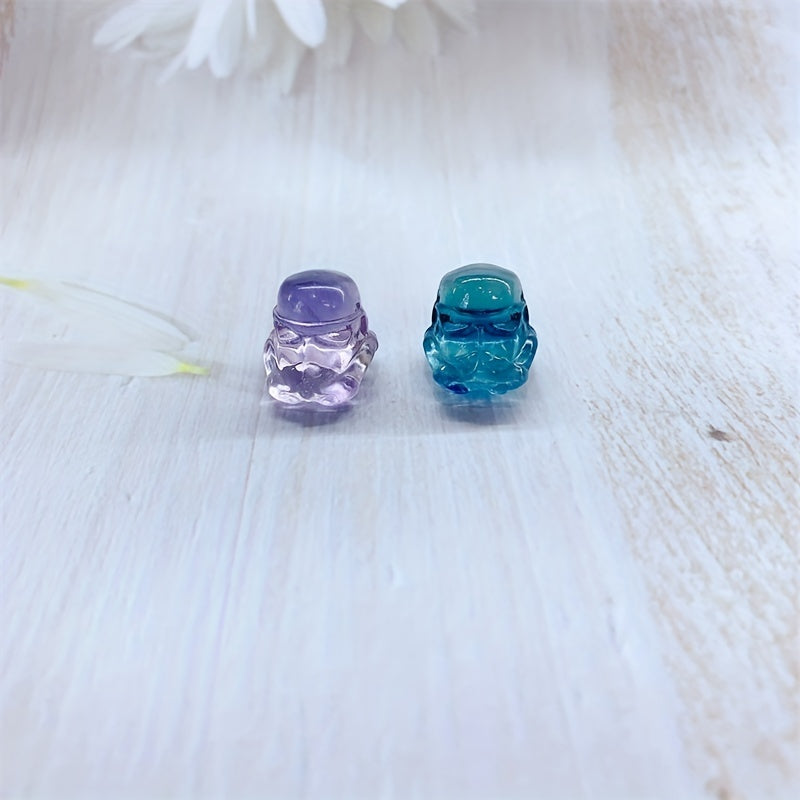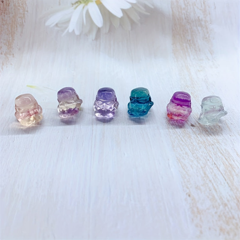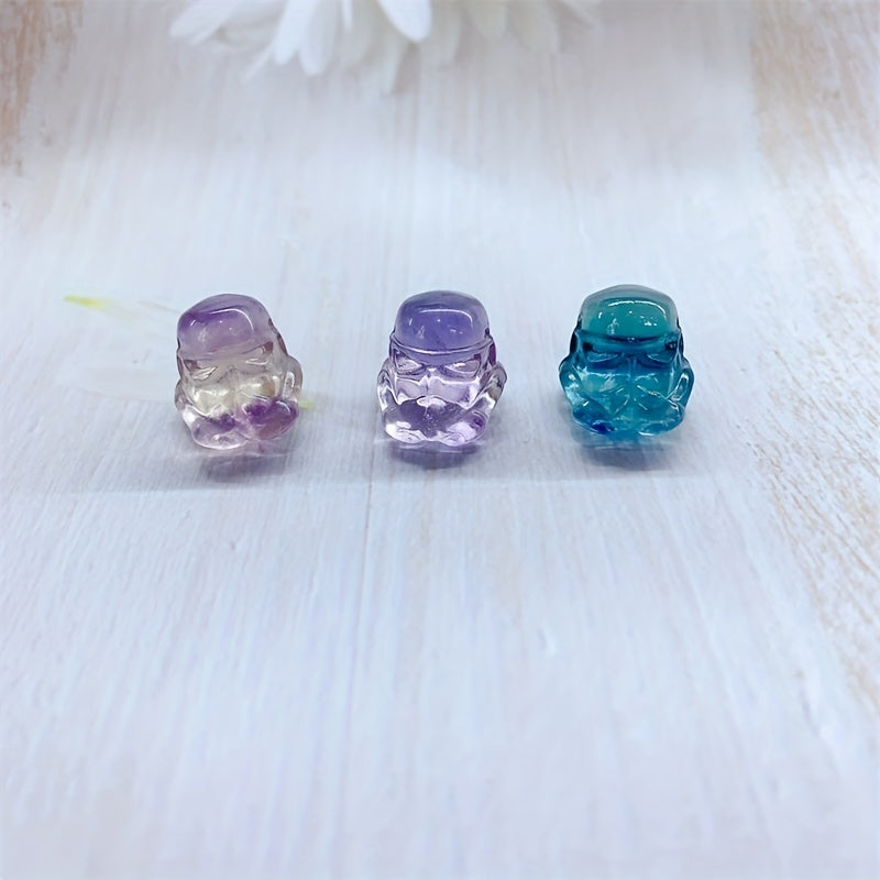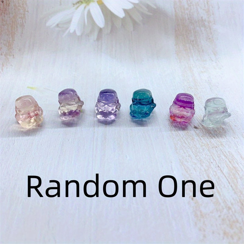 This exquisite rainbow fluorite carved helmet and iron hat make a colorful crystal craft decoration that is perfect for gifting or displaying in your home.