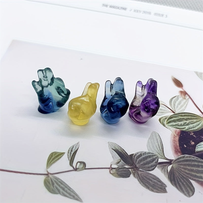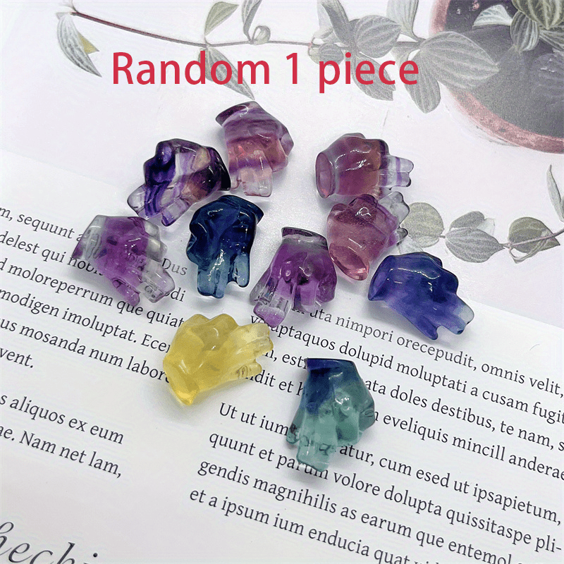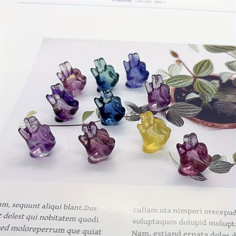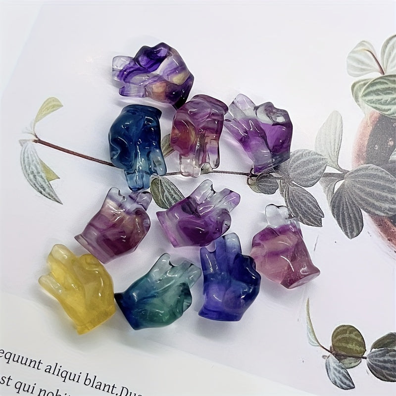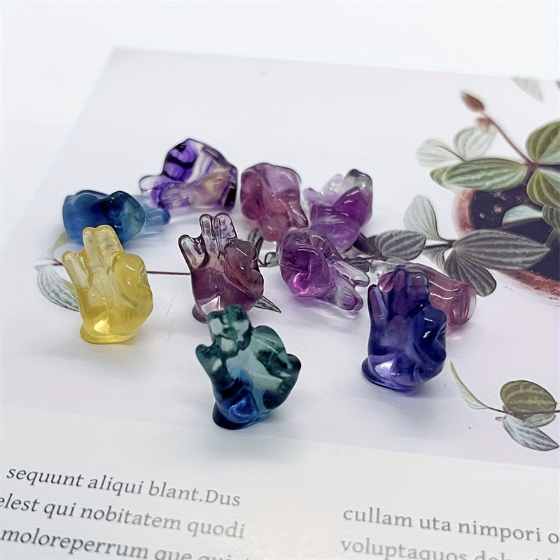 This beautiful Rainbow Fluorite crystal carving features an OK gesture design, making it a perfect gift for kids. It is great for healing and positive energy purposes.