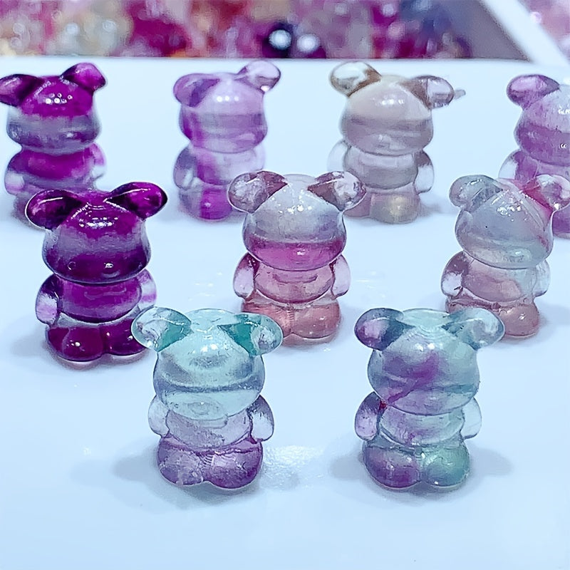 Bring the enchanting energy of rainbow fluorite into your space with this adorable crystal bear figurine.