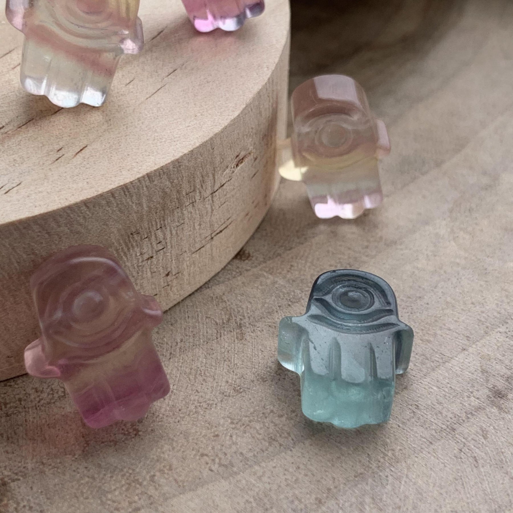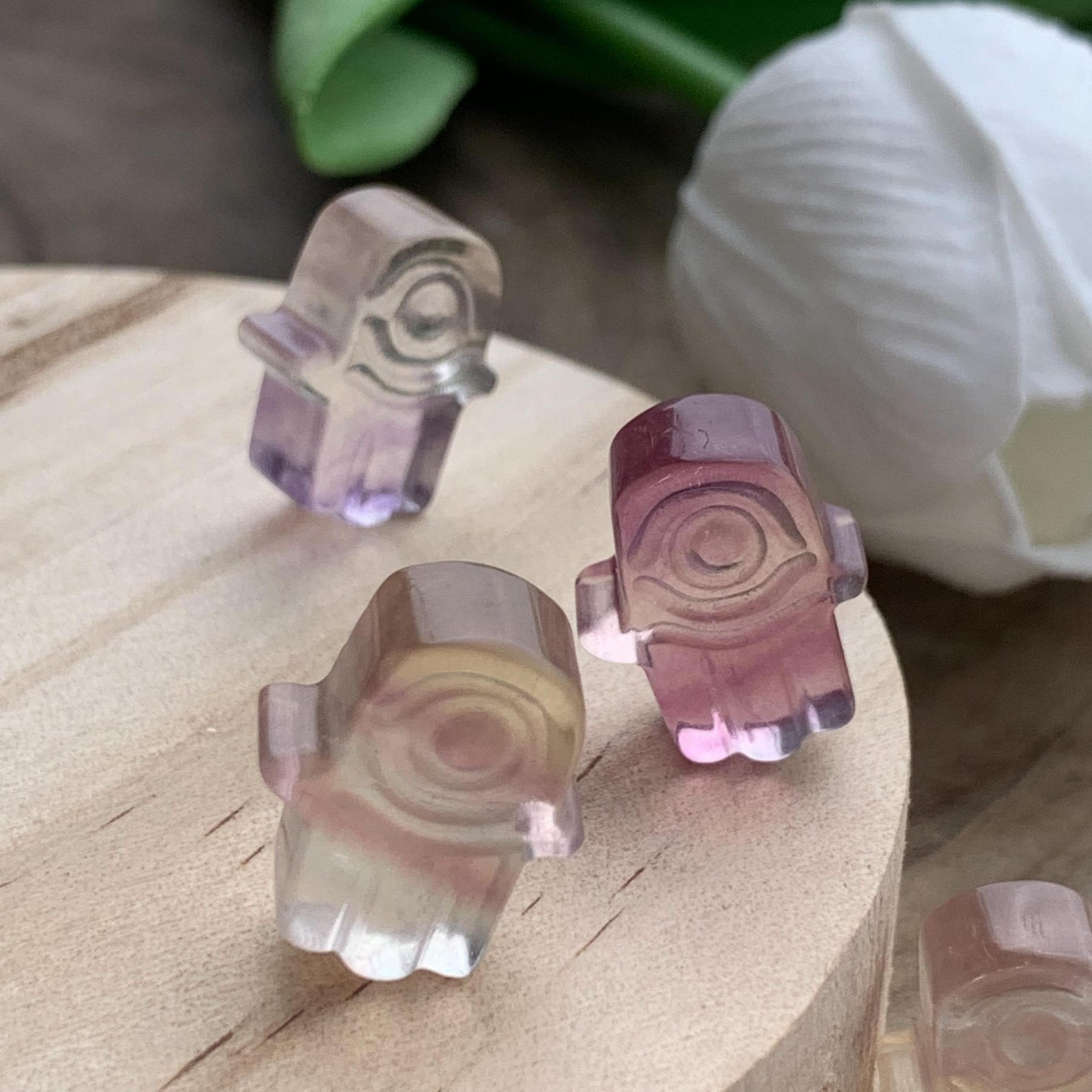 This natural crystal carving of a cartoon character is a delightful and colorful decoration or gift. Made from rainbow fluorite, it brings positive energy and charm to any space.