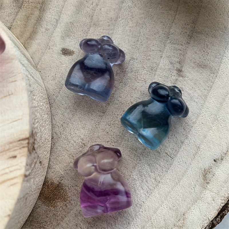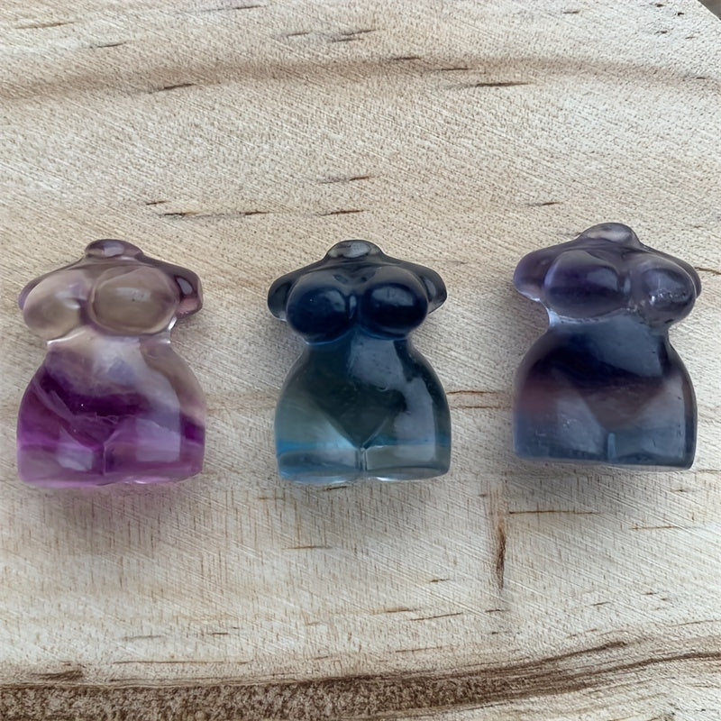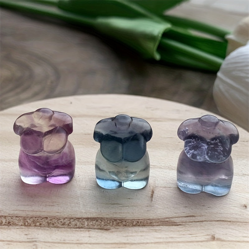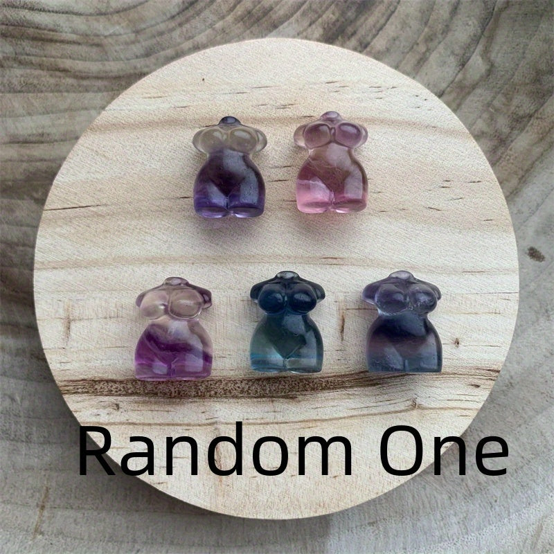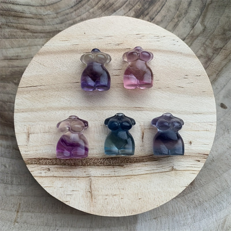This exquisite female body carving is made from natural rainbow fluorite crystal, perfect for decoration or as a unique handcrafted gift for women.