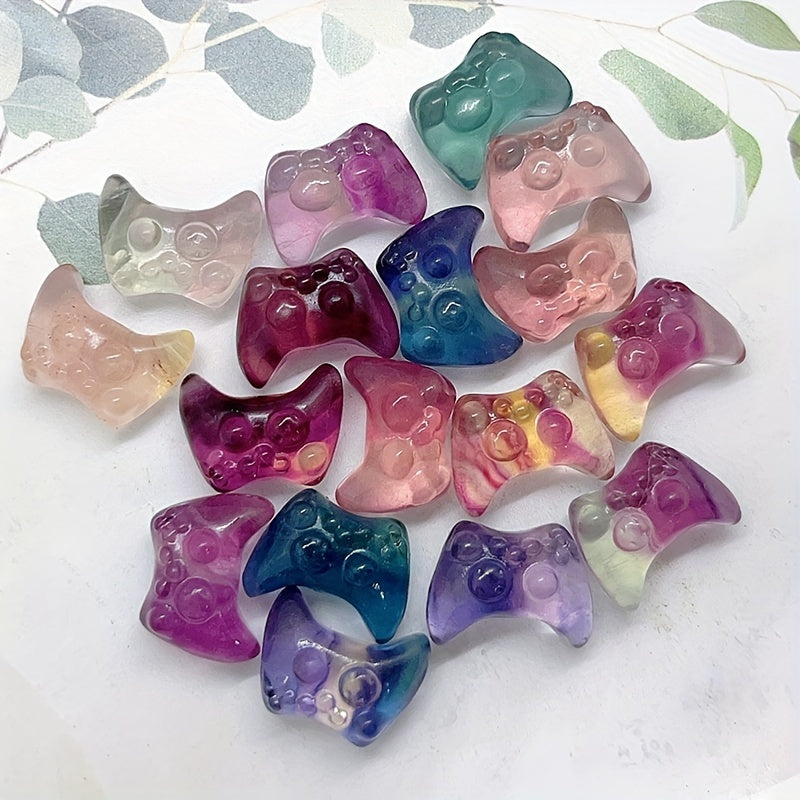 Rainbow Fluorite GamePad Carving Stone for Kids