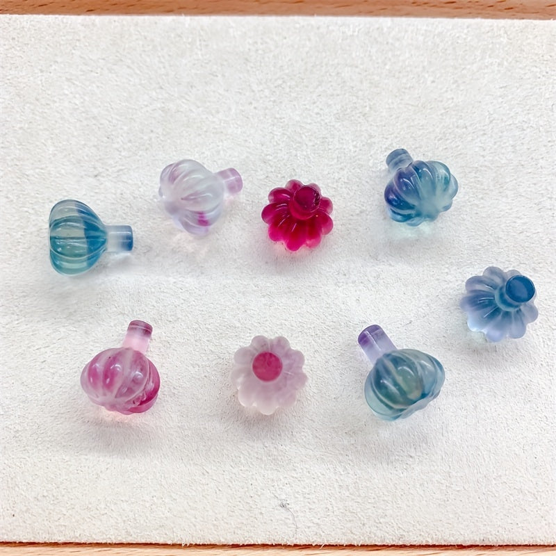 This natural crystal vegetable carving is made from Rainbow Fluorite, known for its healing properties. It is perfect for home decoration and crystal healing practices.