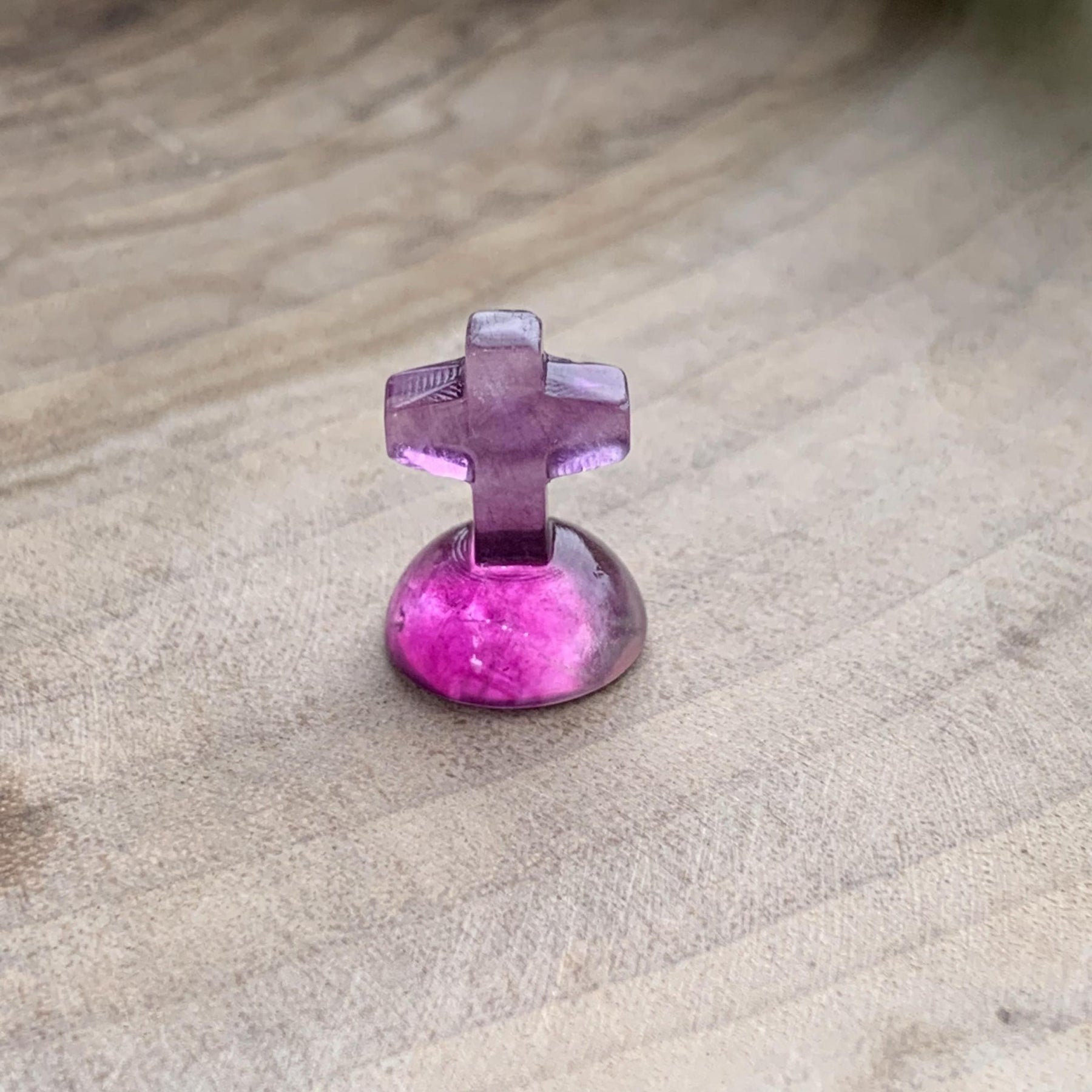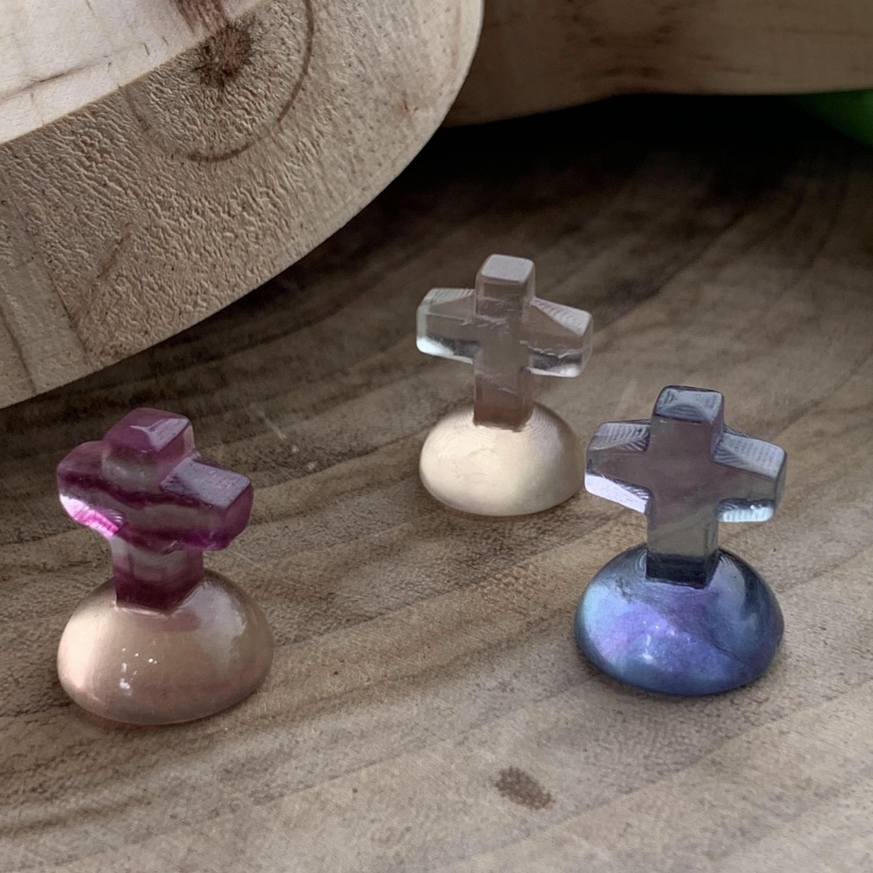 Bring the healing energy of Rainbow Fluorite with this beautiful gravestone cross carving. Perfect for meditation, energy work, or as a decorative piece.