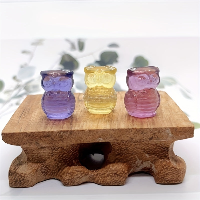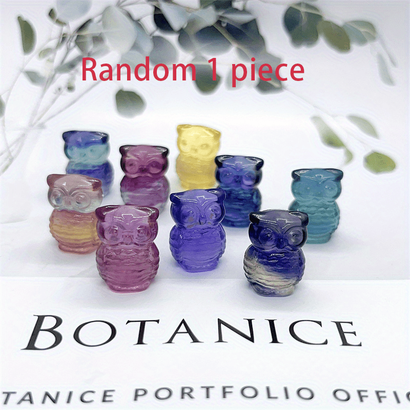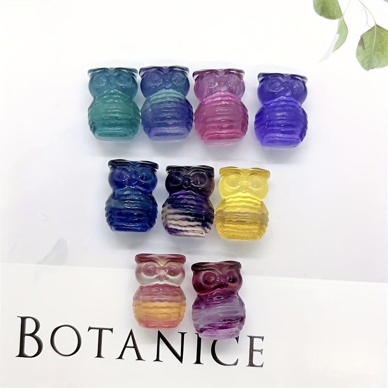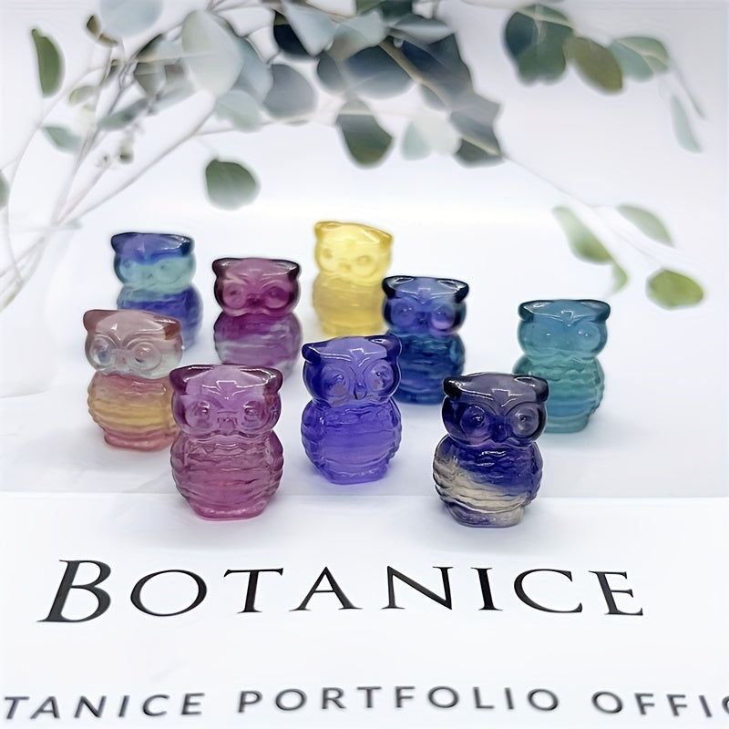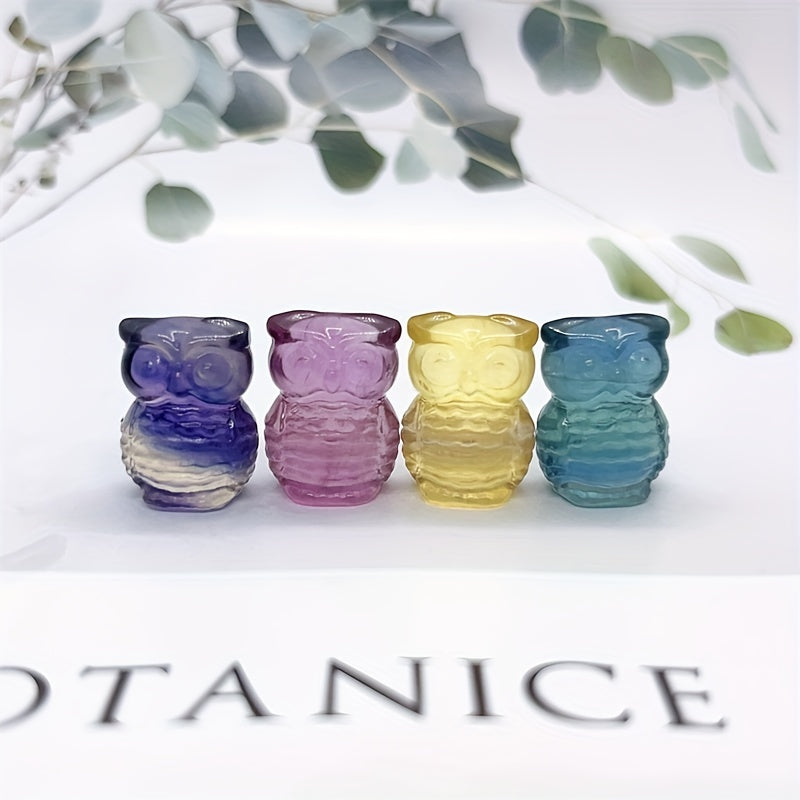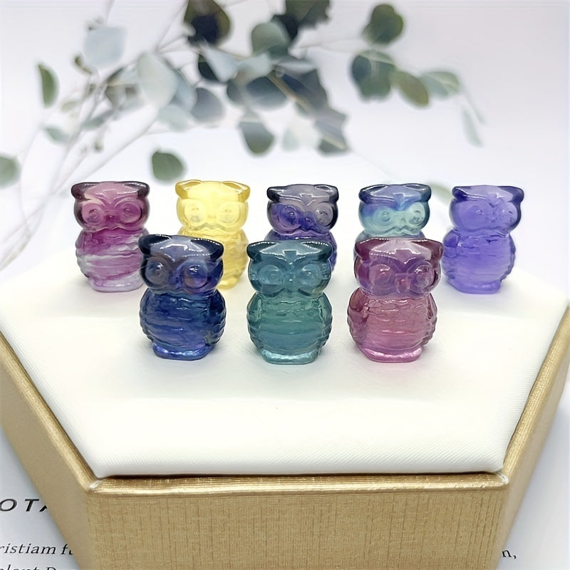 This beautiful owl figurine is carved from rainbow fluorite, a healing crystal known for its calming and protective properties. Perfect as a gift for kids or as a unique home decoration.