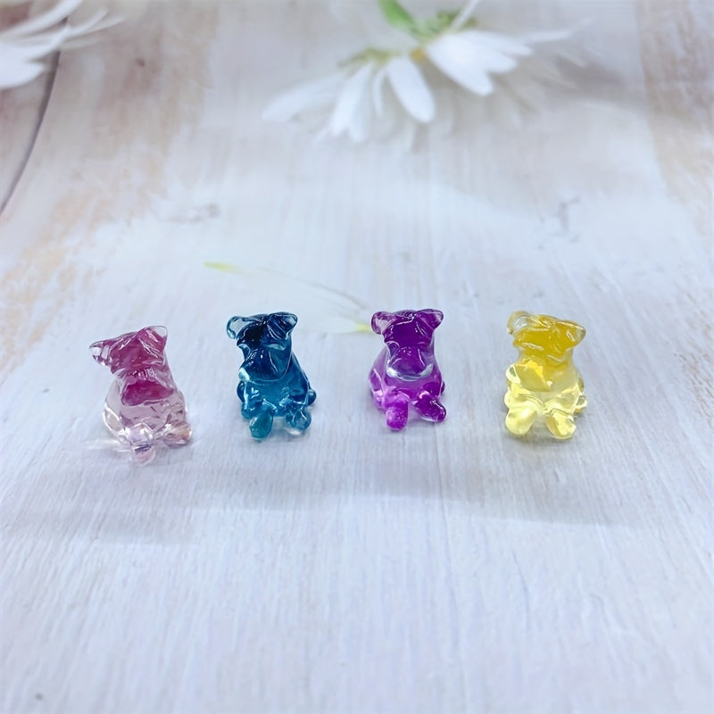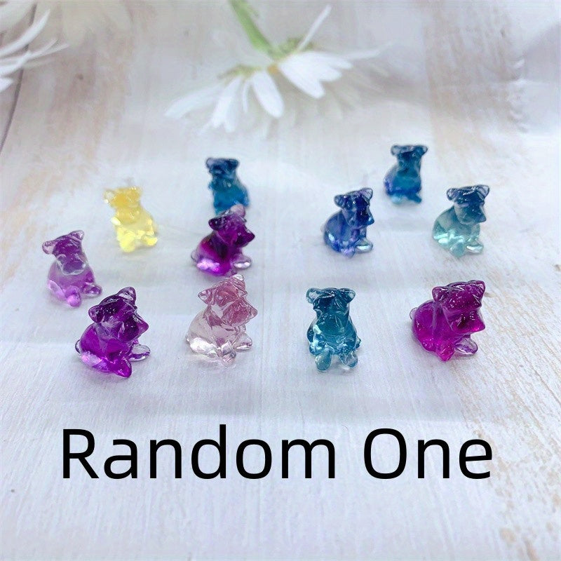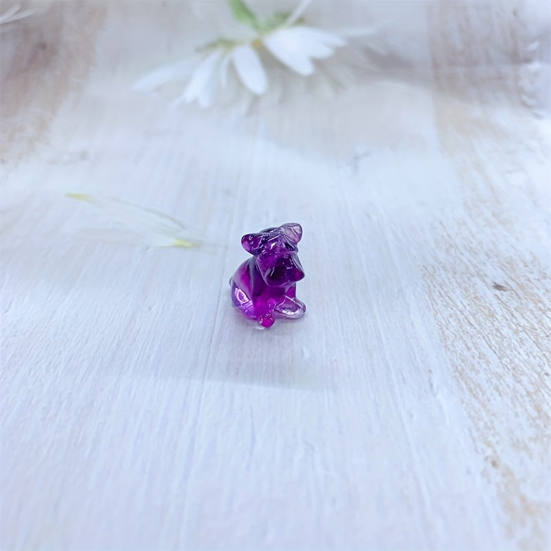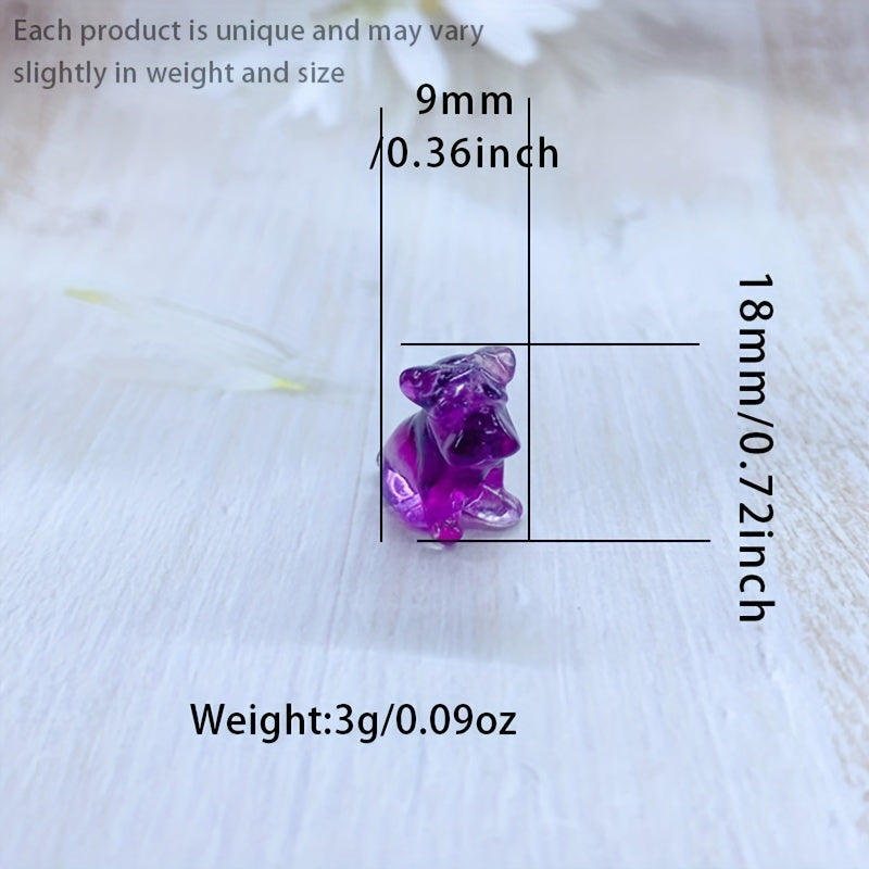 This adorable puppy figurine is hand-carved from natural rainbow fluorite crystal, making it a unique and beautiful decoration or gift. The rainbow fluorite stone is known for its calming and balancing properties.