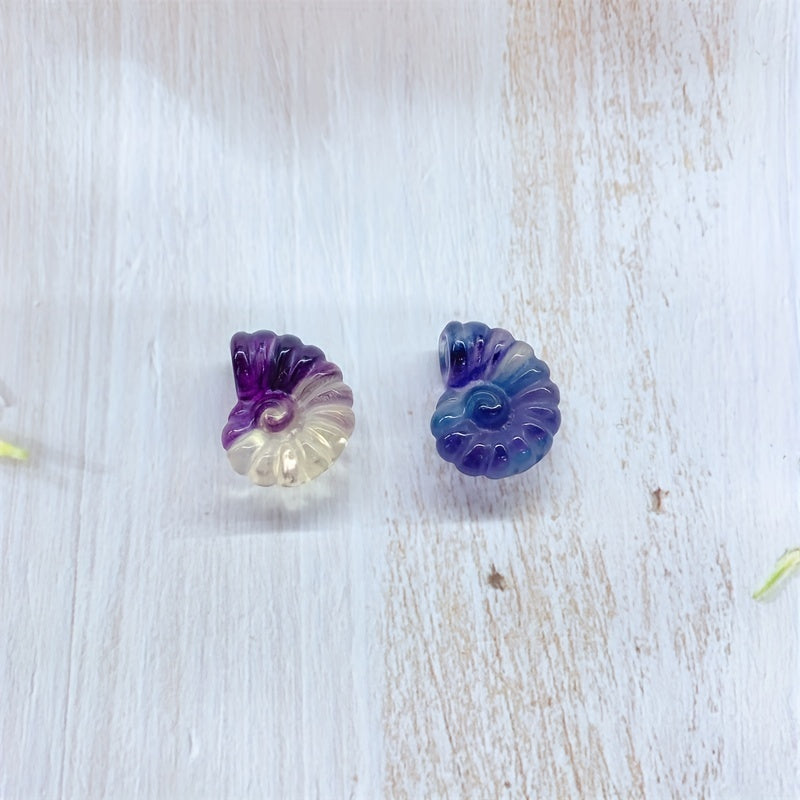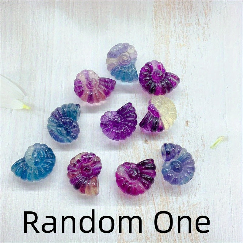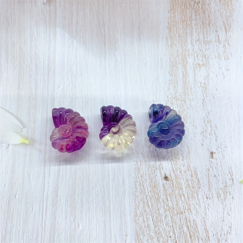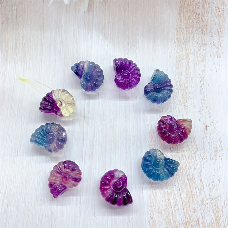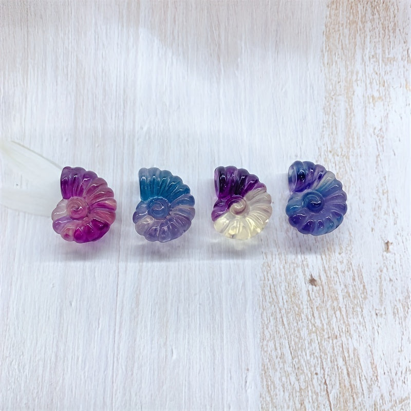 This beautiful rainbow fluorite sea snail carving is made of natural crystal, featuring a colorful conch design that will delight kids. A perfect addition to any crystal collection.