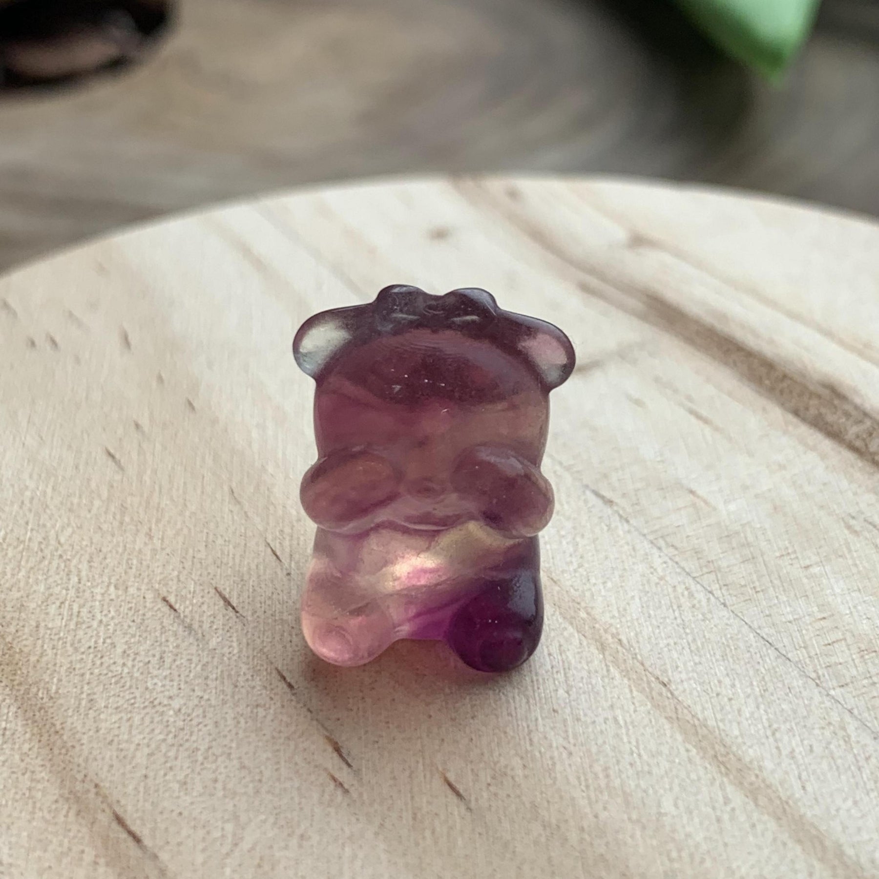 Adorable handcrafted shy girl carving made of rainbow fluorite. These colorful toys are perfect for healing and relaxation.