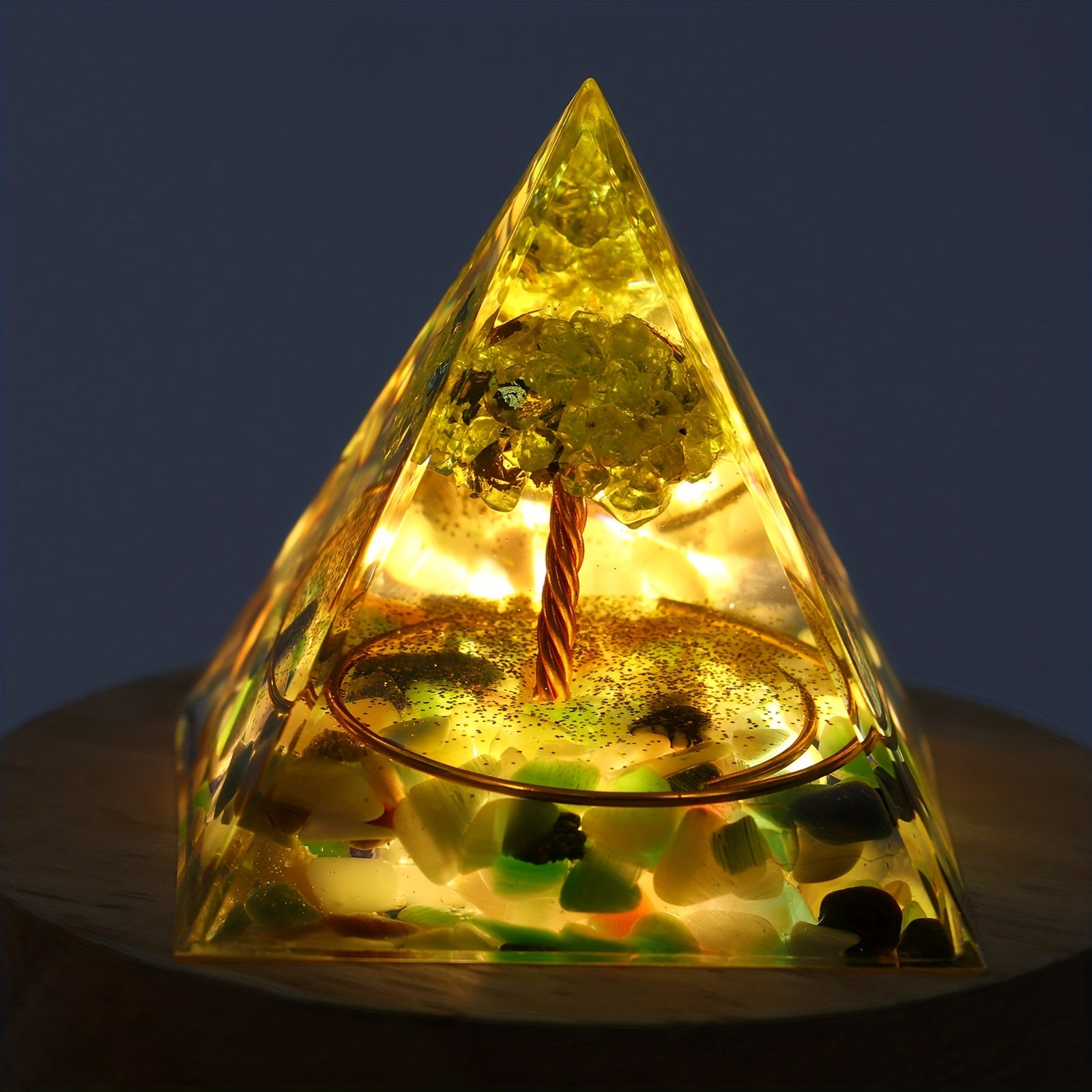 This orgone pyramid is crafted with Rainbow Fluorite for positive energy healing. It helps protect and balance energy fields.