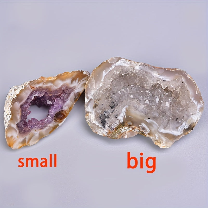Experience the beauty of natural agate crystals in varying sizes. Each piece is unique and brings positive energy.