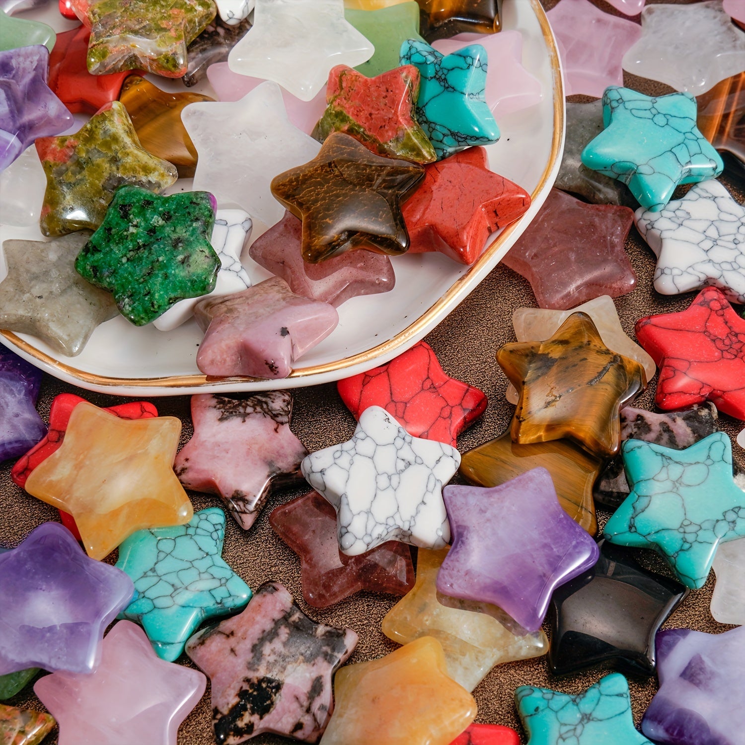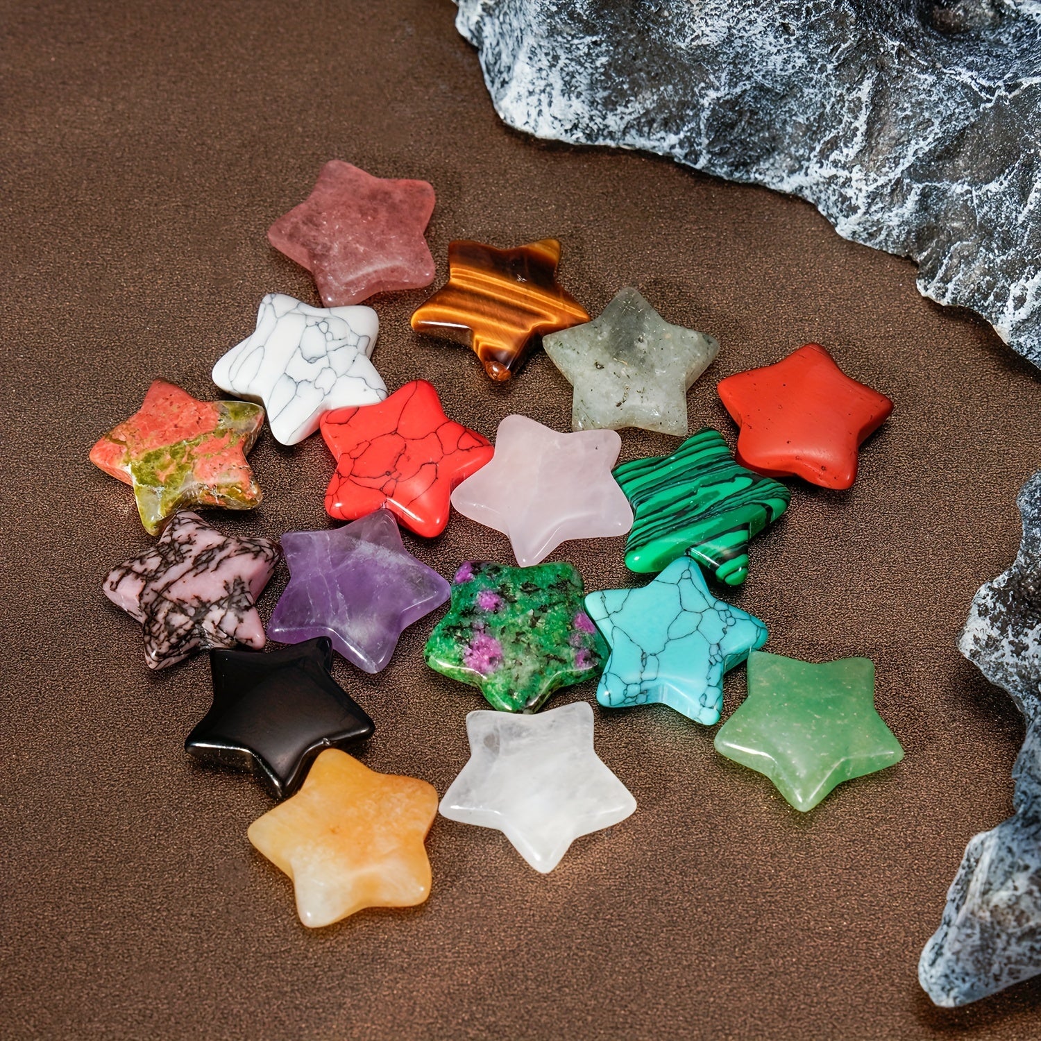 Get a variety of natural stones crystal stars perfect for DIY jewelry making. Each pack contains a random mix of colors.