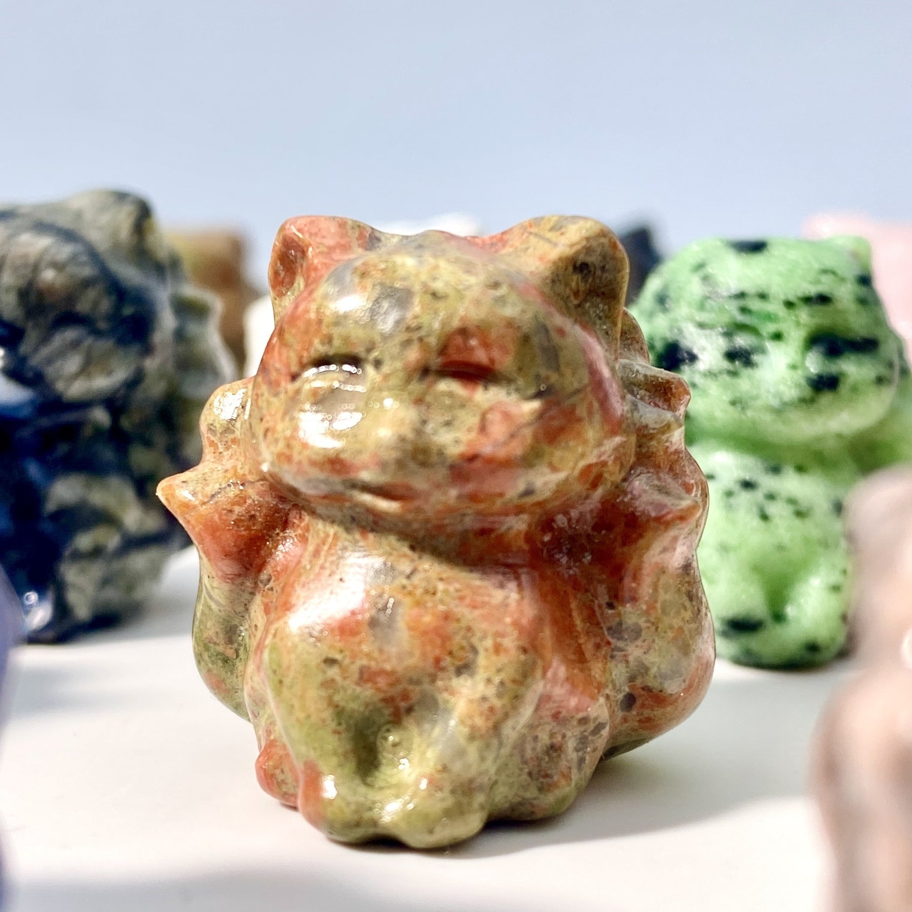 Add a touch of mystical energy to your space with this healing crystal featuring a unique nine-tailed fox design. Perfect for home or car decor.