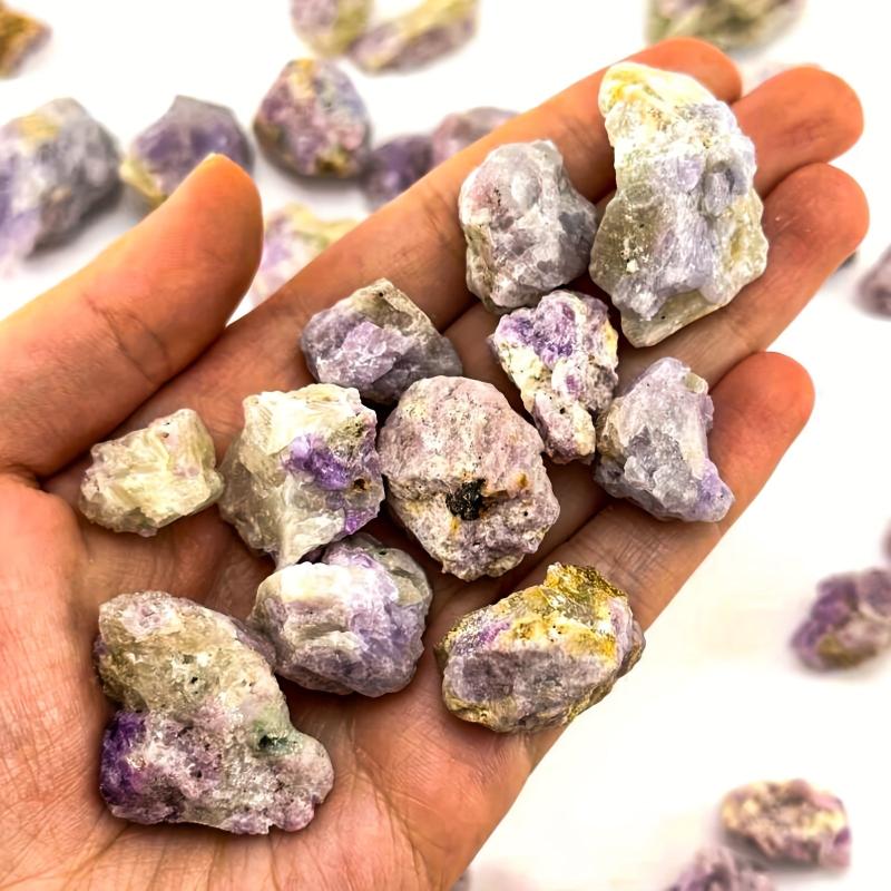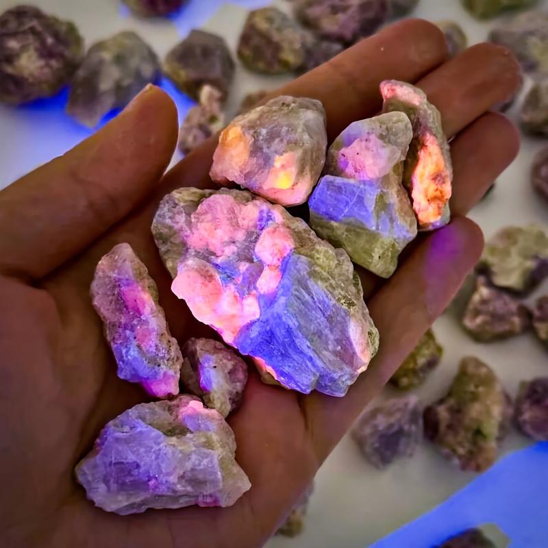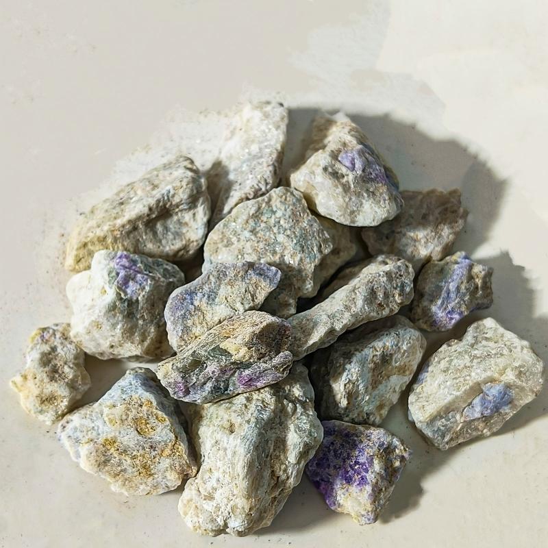 High quality Hackmanite rawstone specimen that exhibits a strong response to UV light. Perfect for home and office desktop decor or as a natural crystal for aquariums and fish tanks.