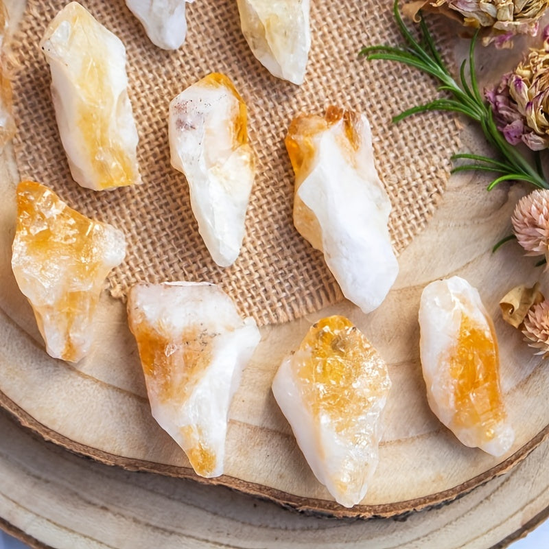 This raw citrine crystal features a golden yellow color that symbolizes joy and positivity.