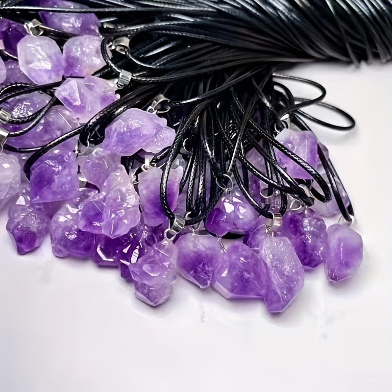 This natural raw stone amethyst pendant features an irregular shape and is perfect as a unique crystal necklace pendant. It makes a thoughtful gift for friends and loved ones.