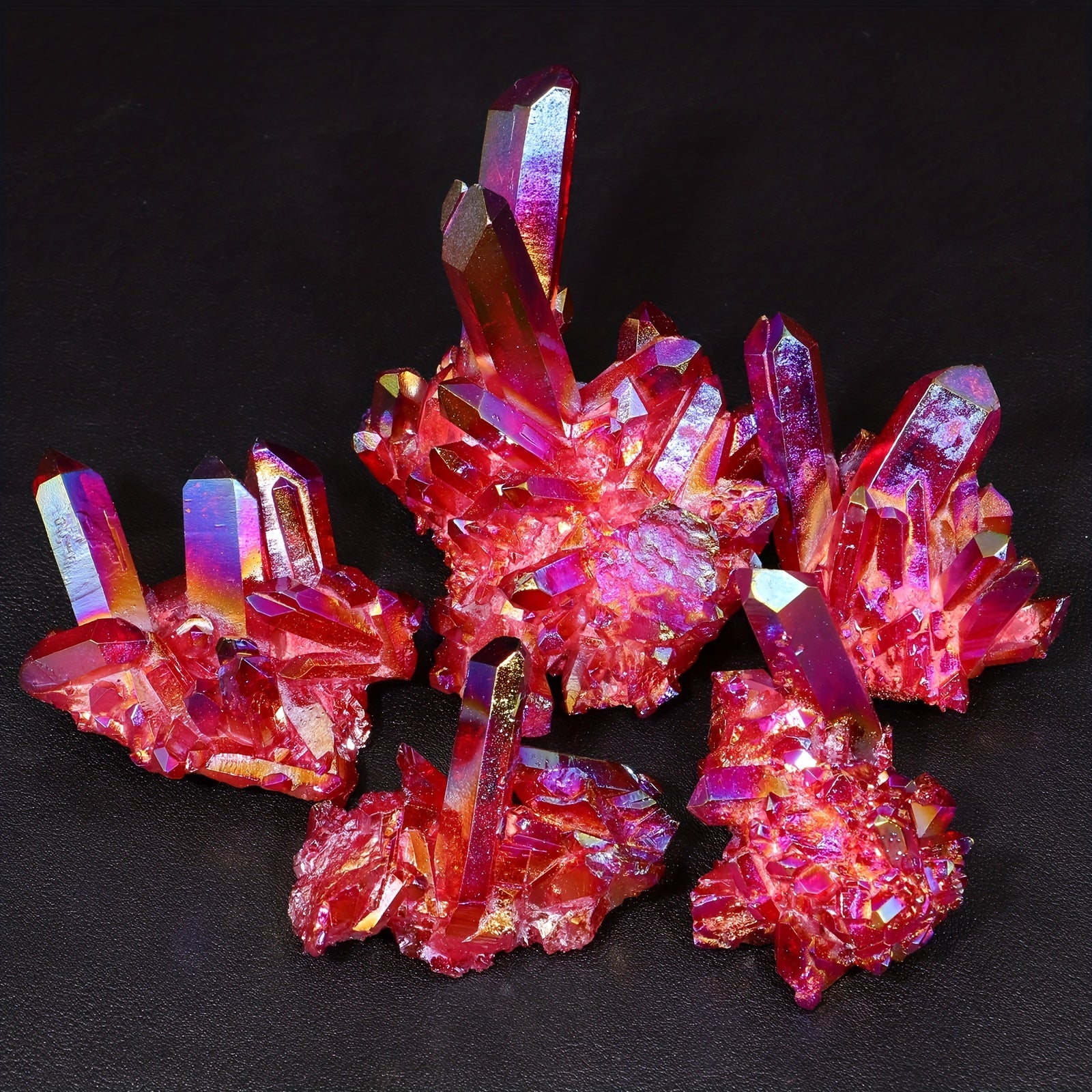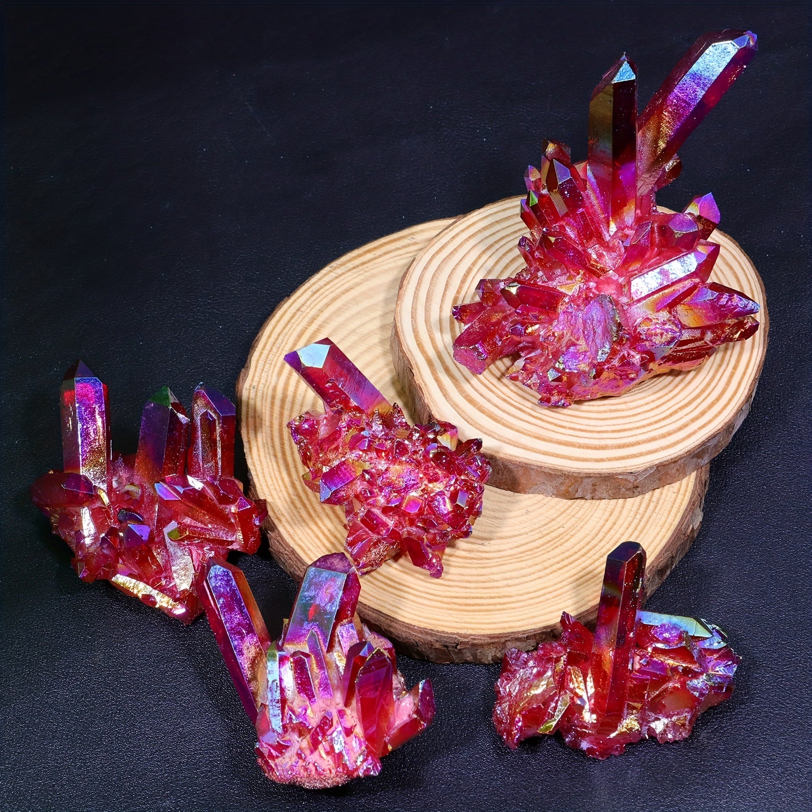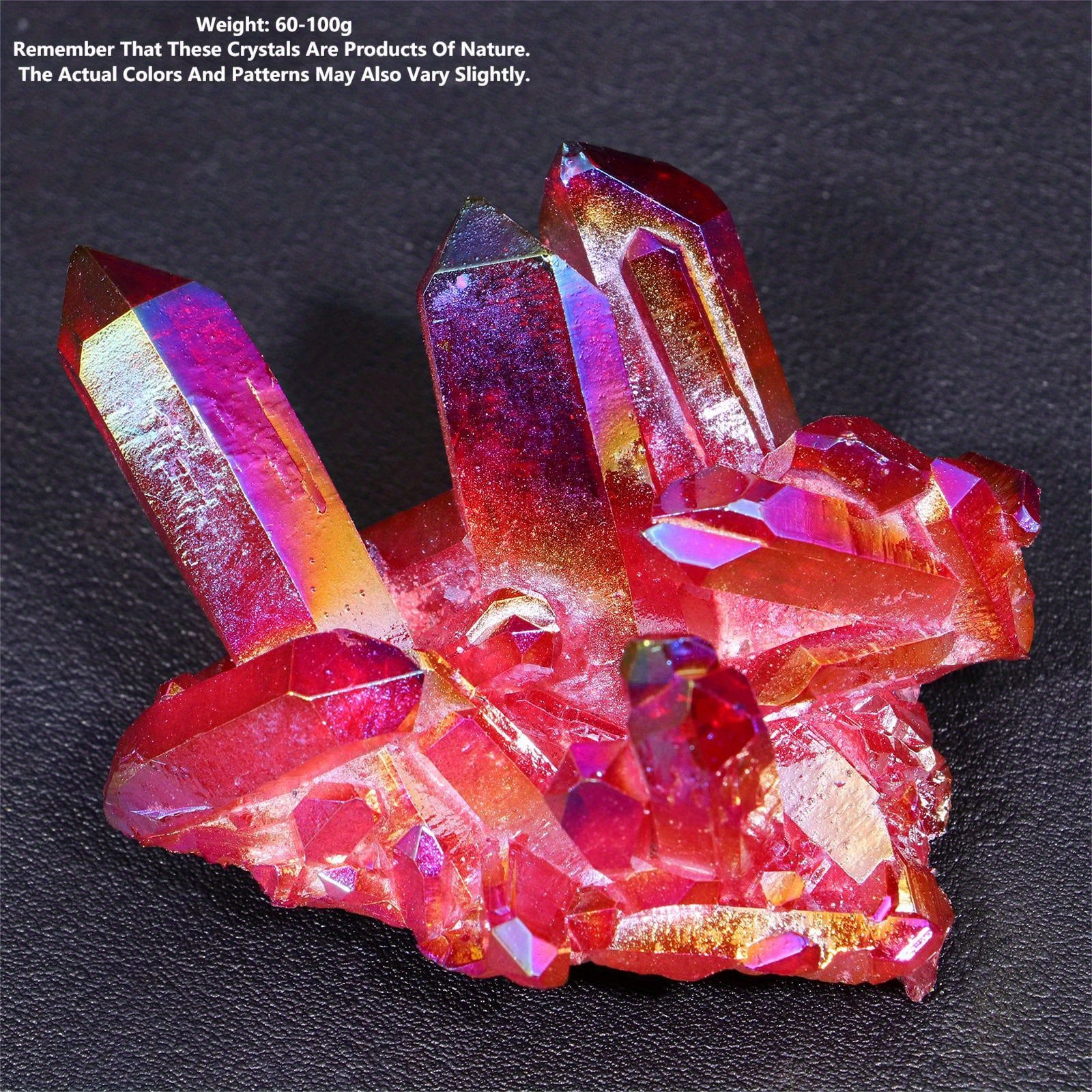 This stunning crystal cluster features a red titanium rainbow aura Lemurian Quartz point, perfect for healing and decoration. Add a touch of elegance to your space with this unique piece.
