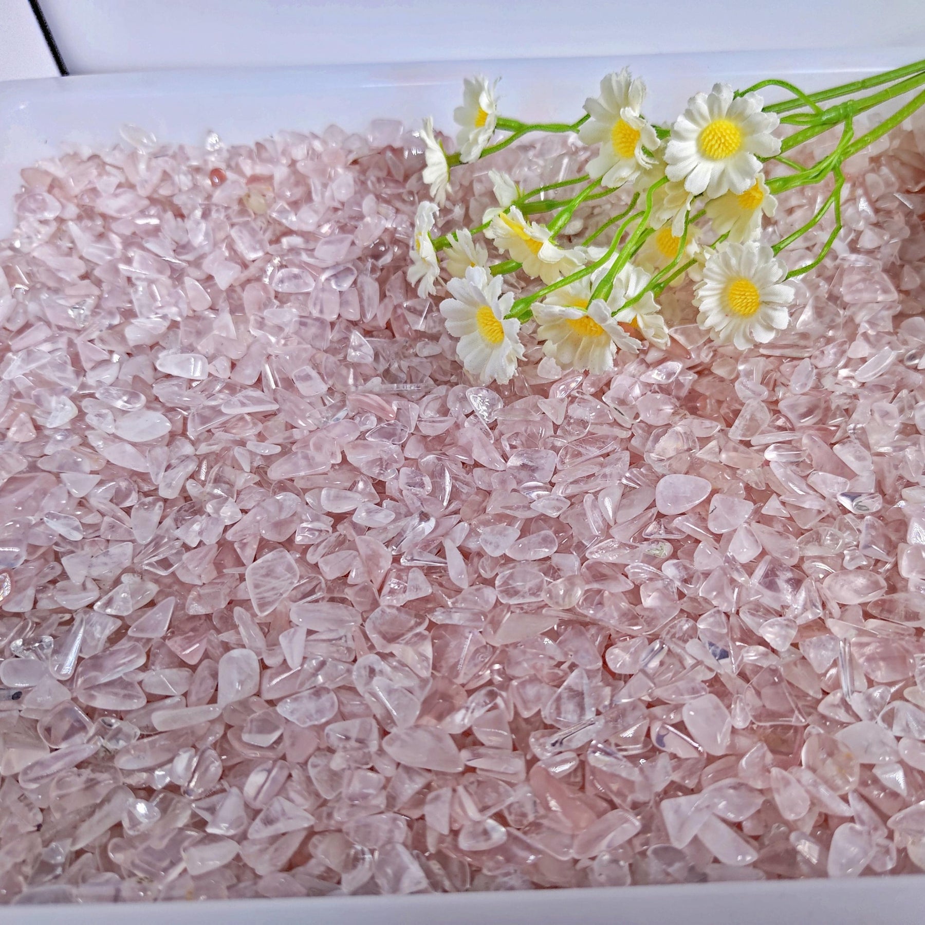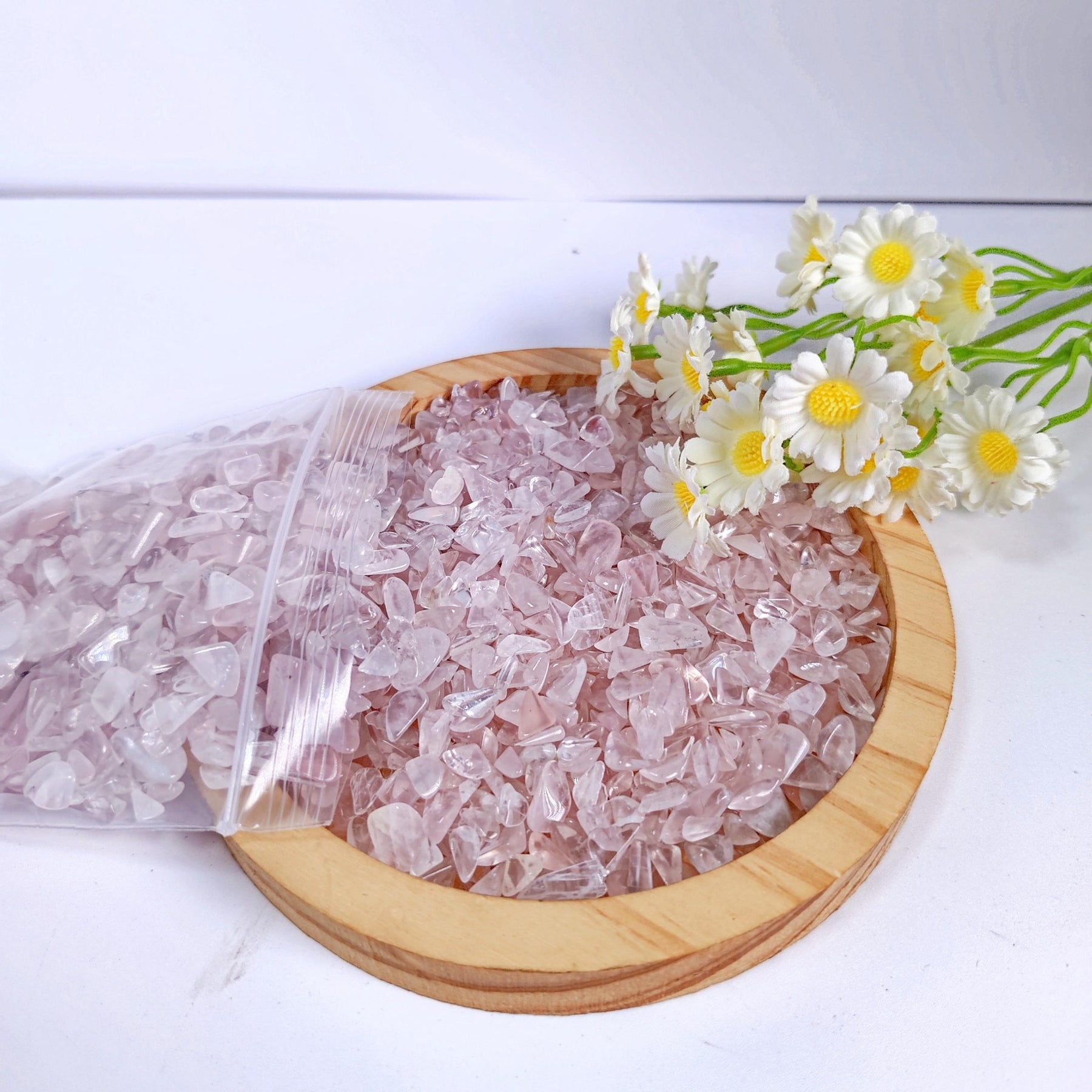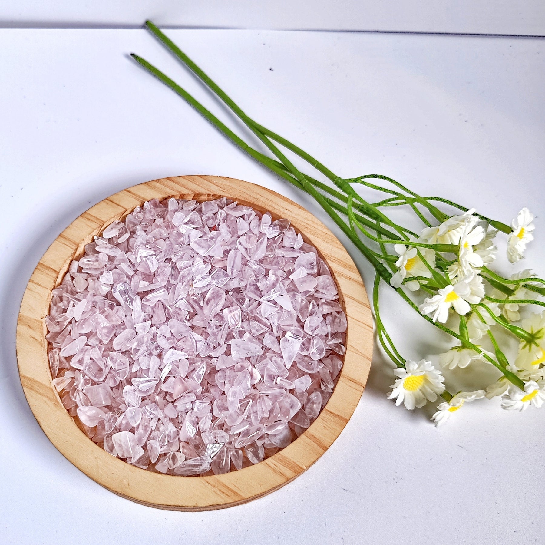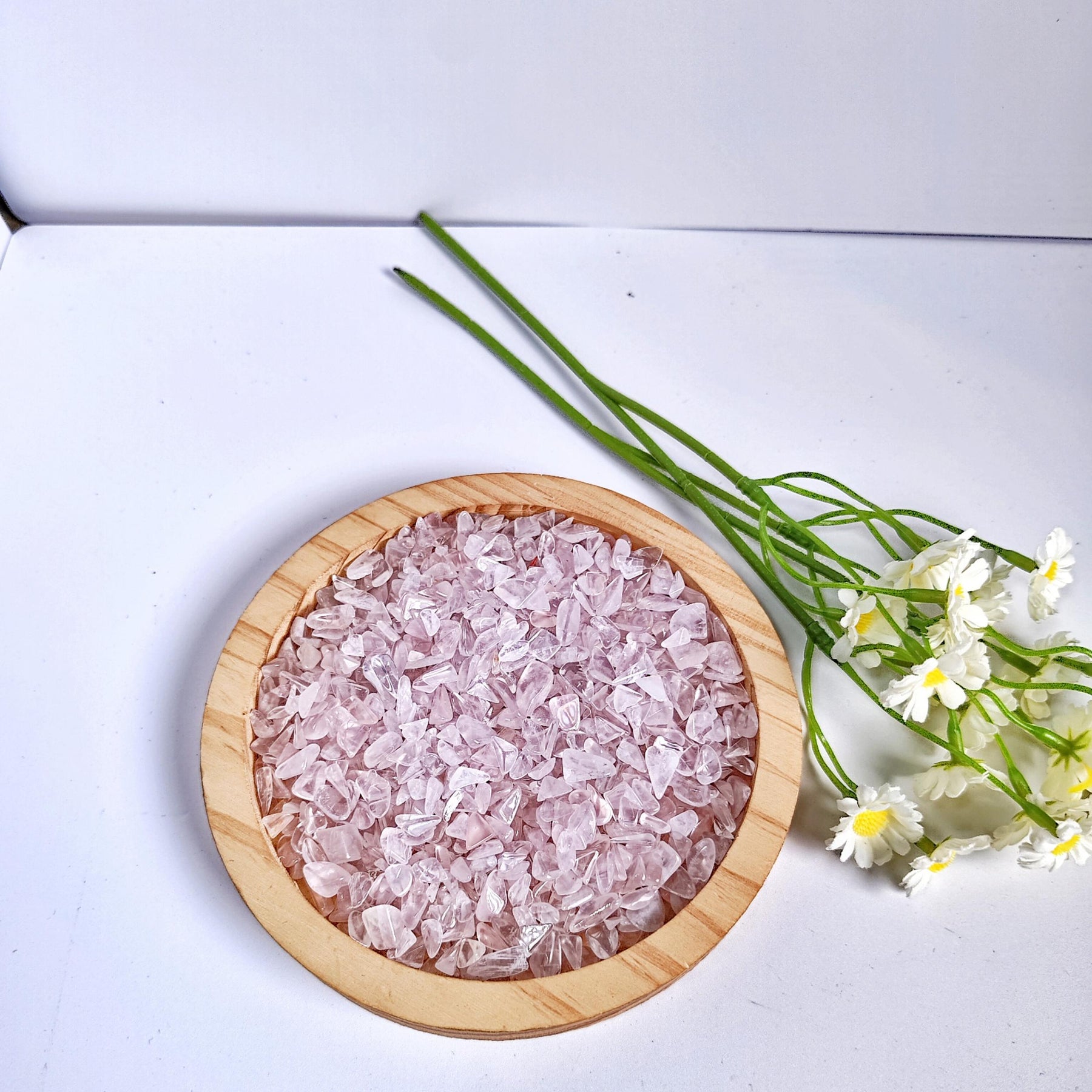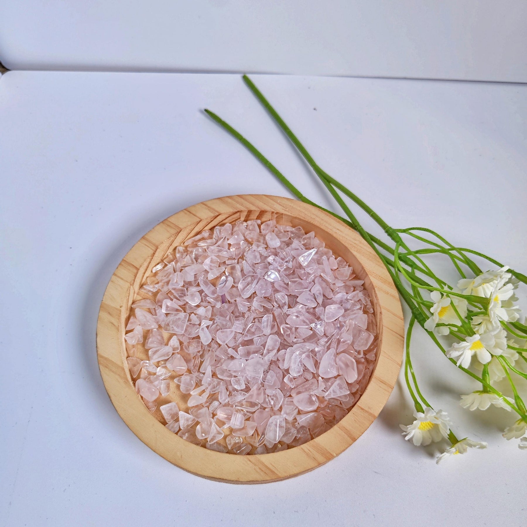 Experience the healing power of natural rose quartz with these crushed stone crystal stones. Enhance your creativity and positivity with these natural crystal carvings.