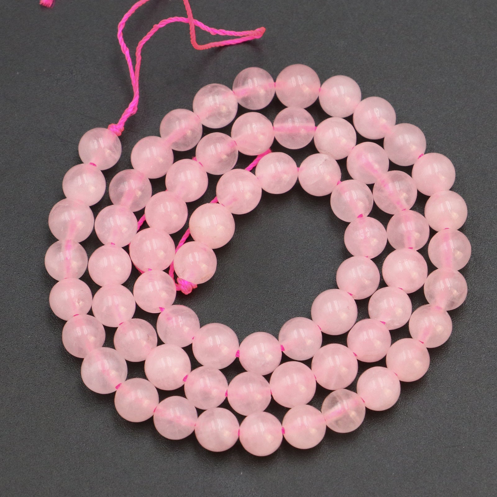 Add a touch of elegance to your jewelry creations with these pink rose quartz crystal round beads. Perfect for DIY bracelets, necklaces, and earrings.