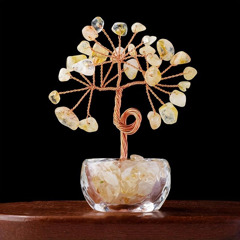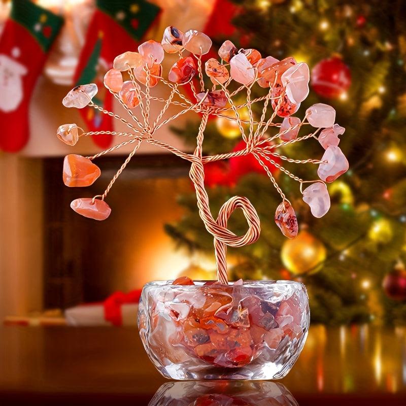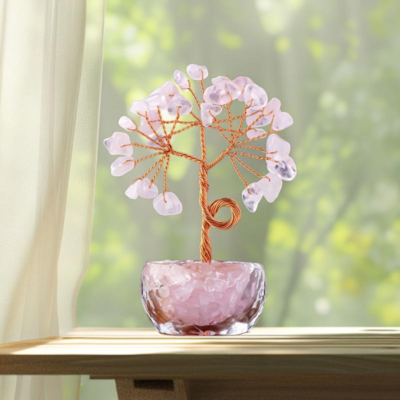 This natural rose quartz crystal tree is perfect for DIY projects and home decoration. Add a touch of elegance to your space with this hand-woven life tree.
