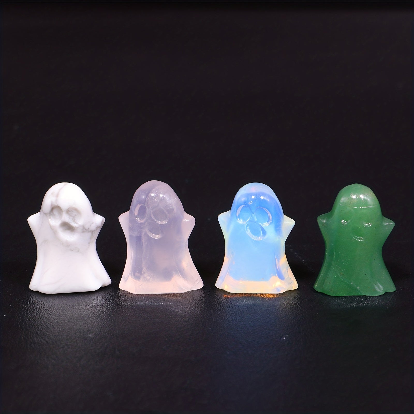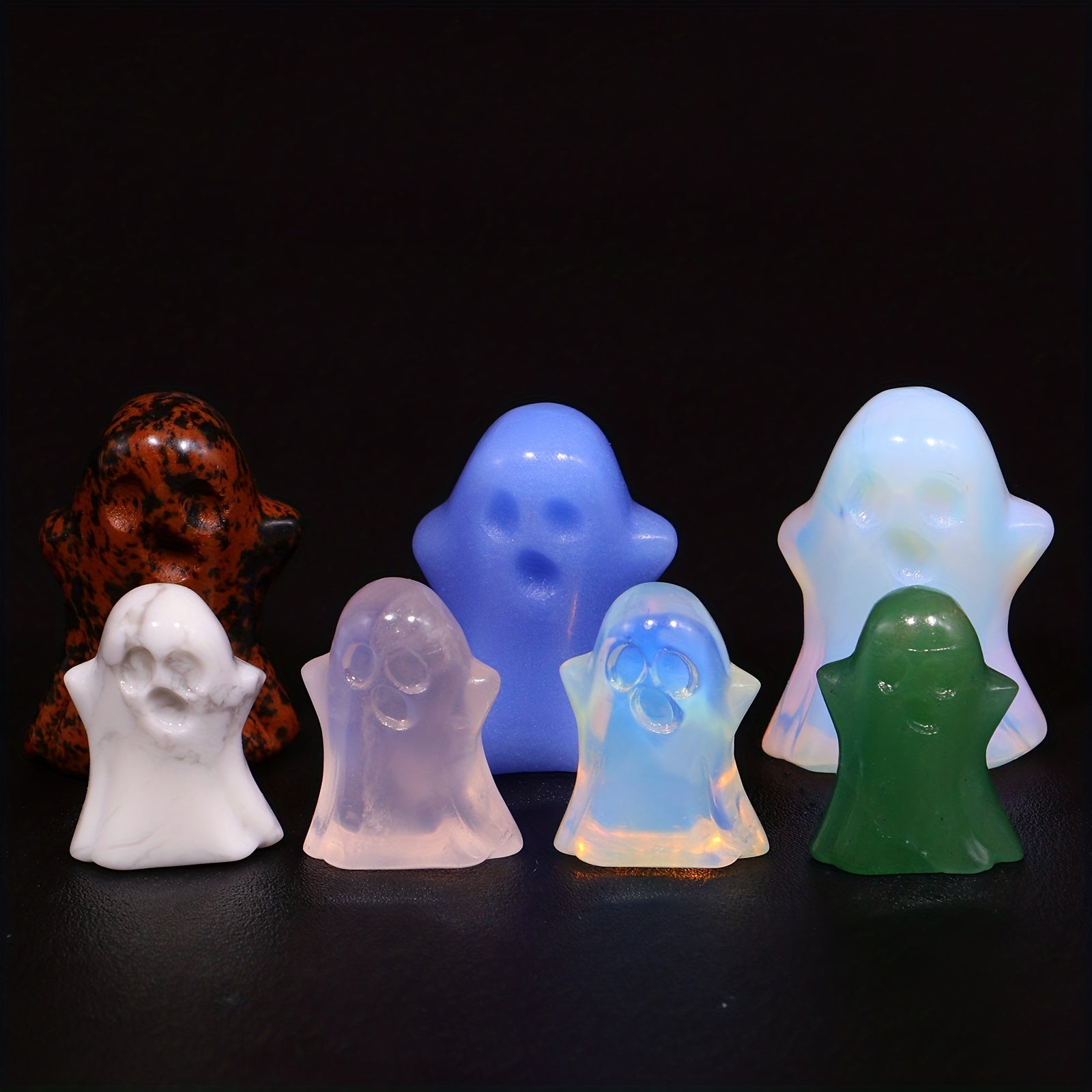 This natural crystal ghost statue is carved from rose quartz, a healing crystal that brings love and harmony. It is a perfect home decoration or Halloween gift, also a unique mineral specimen.