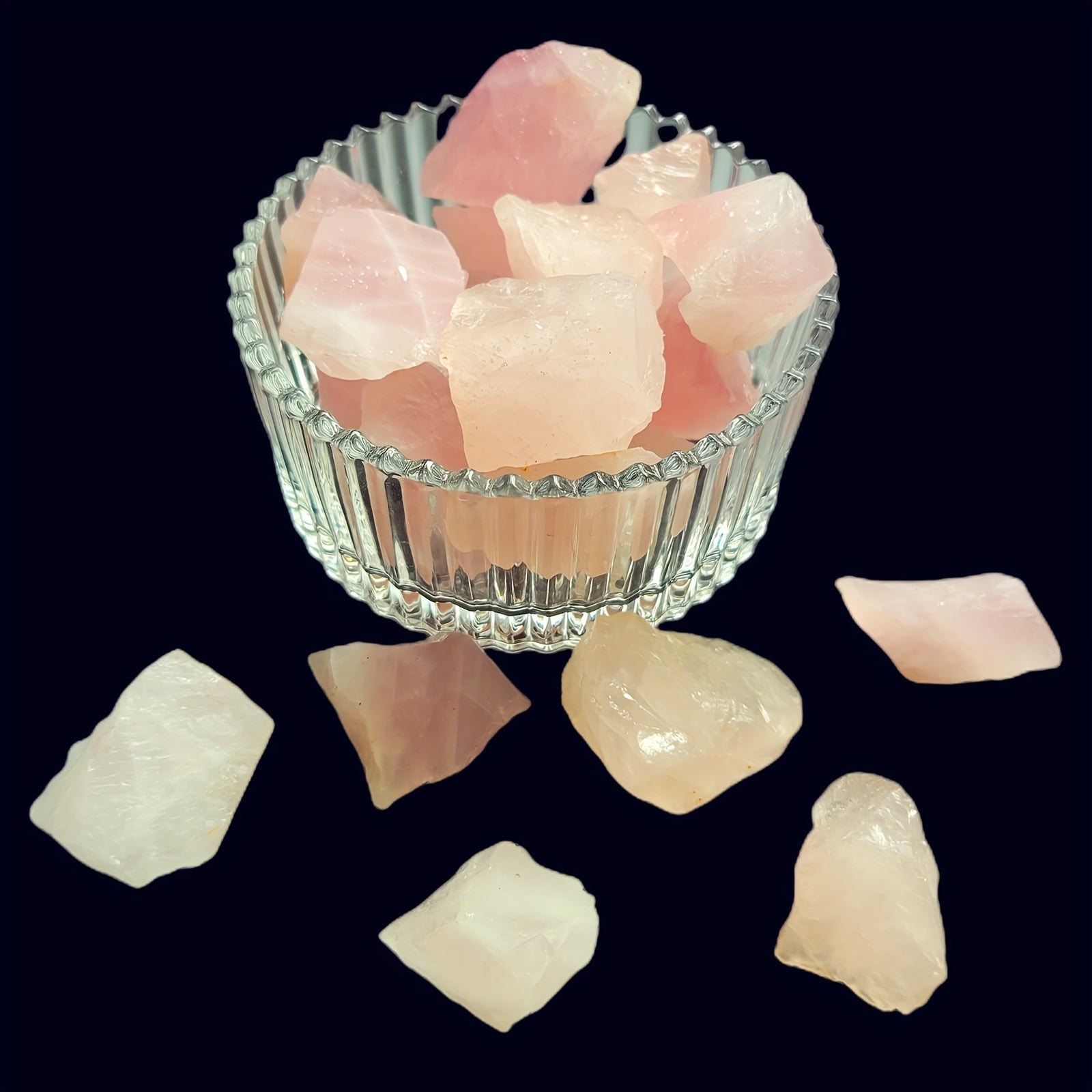 Enhance your space with these raw rose quartz stones. Perfect for tumbling, cabbing, and polishing. Ideal for Wicca, Reiki, decor, and jewelry making.