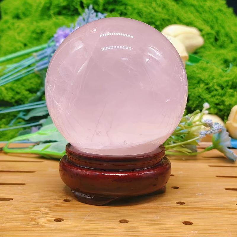 Enhance the energy of love and romance with this beautiful natural Rose Quartz sphere. Perfect for meditation, healing, and decoration.