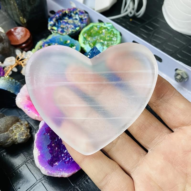 This natural polished Selenite heart shaped bowl is a perfect yoga stone container for holiday gifting. It comes in a gift box, making it ideal for Christmas, Thanksgiving, Easter, Hanukkah, and Halloween gifts.