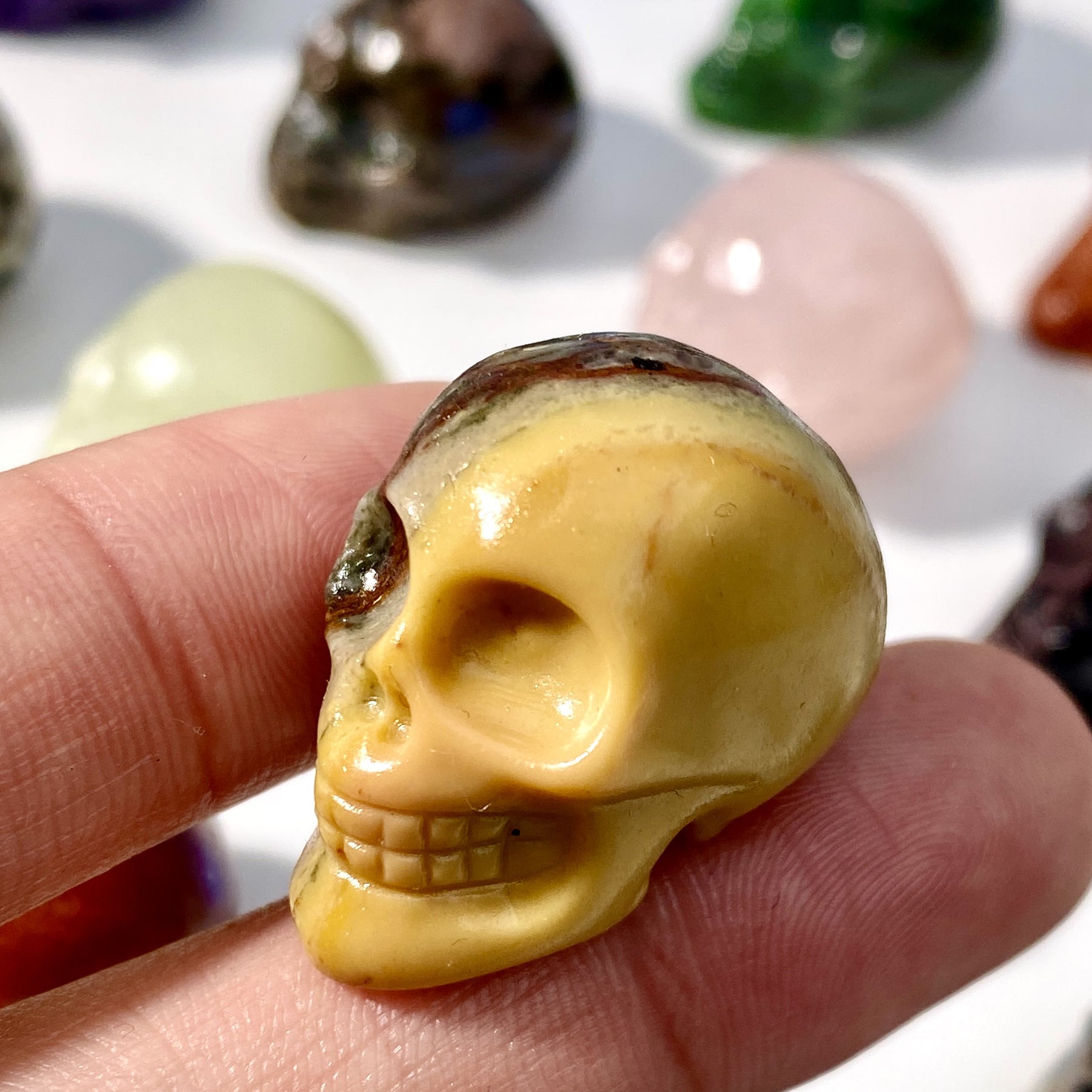 Bring positive energy to your space with this natural crystal skull carving. Perfect for desktop decoration and healing purposes.