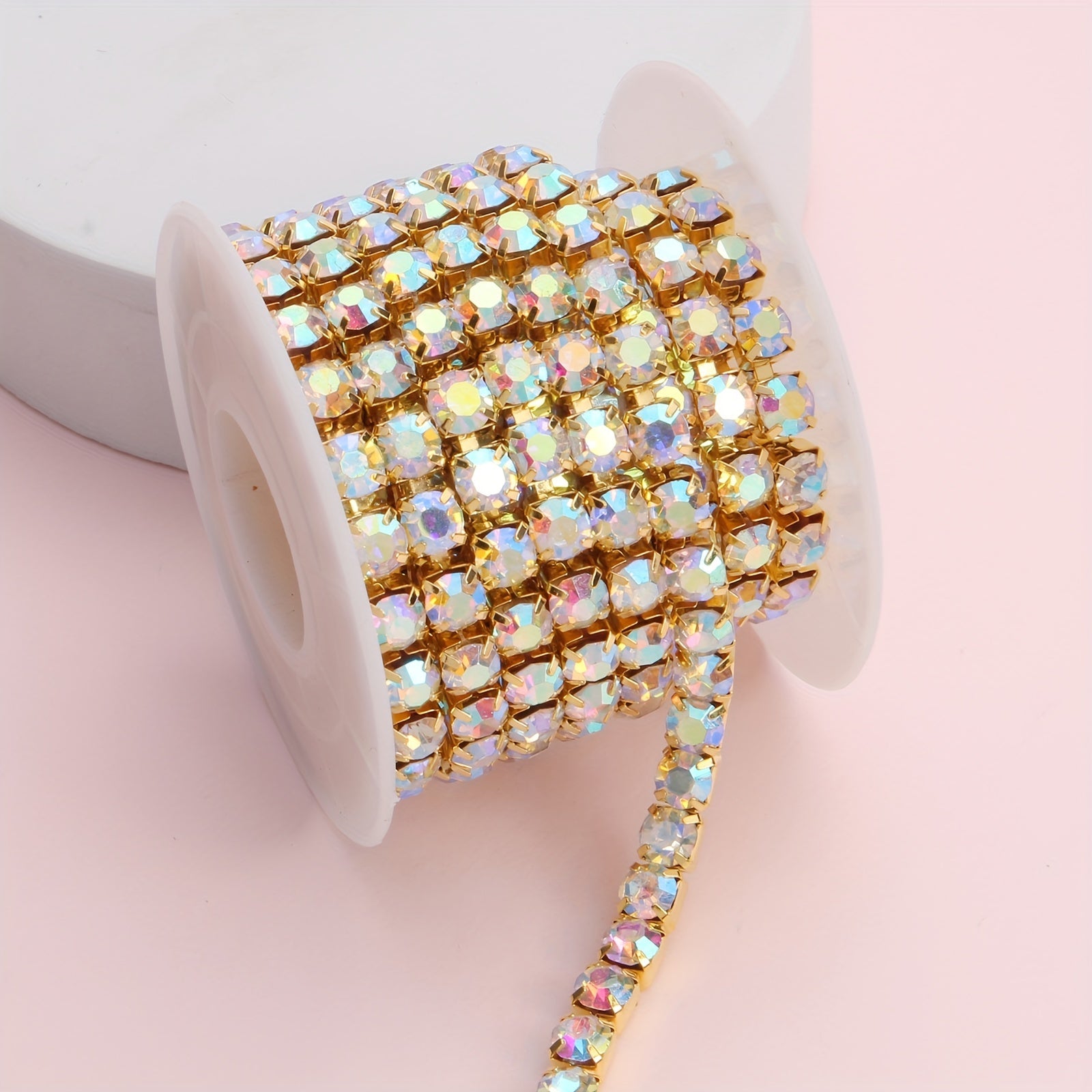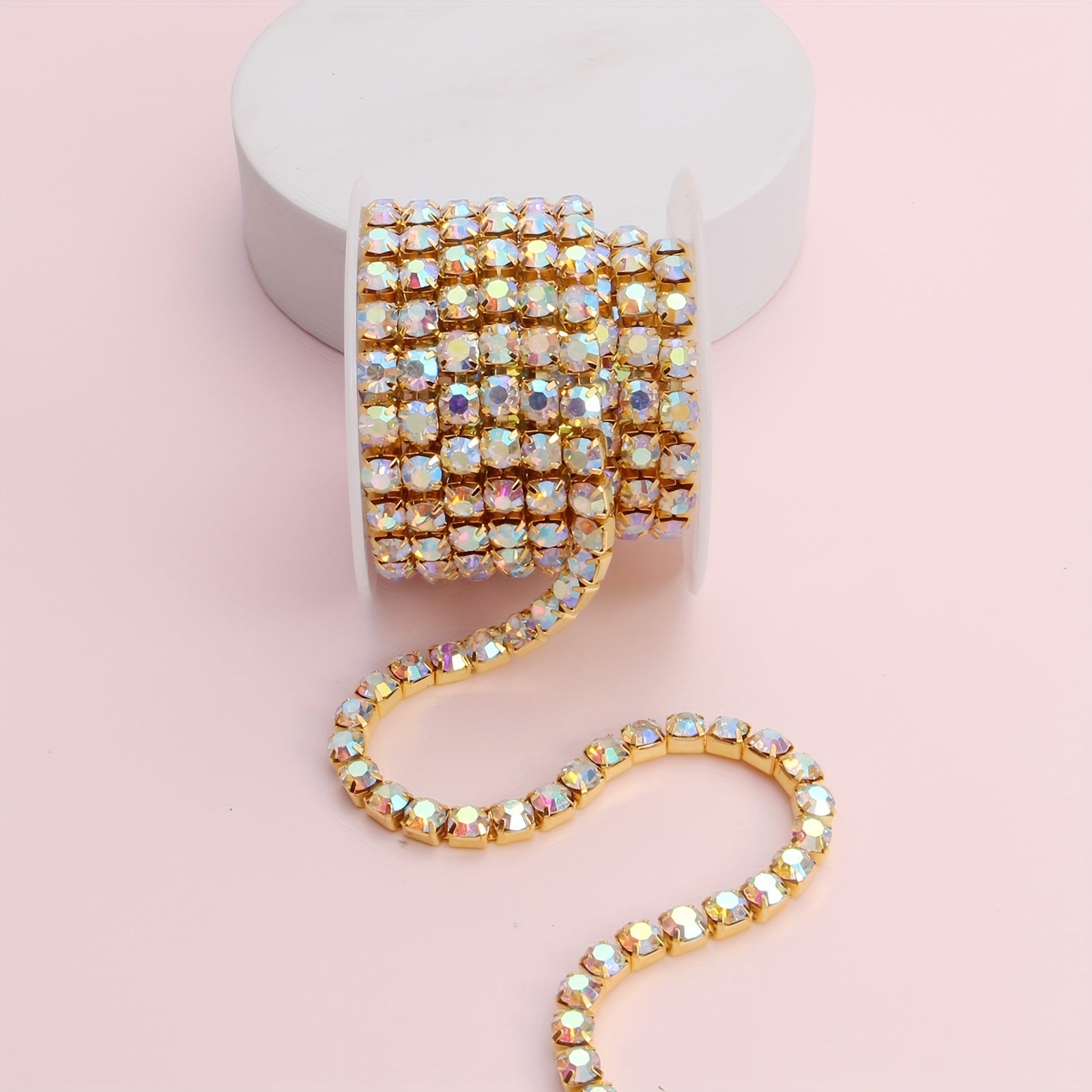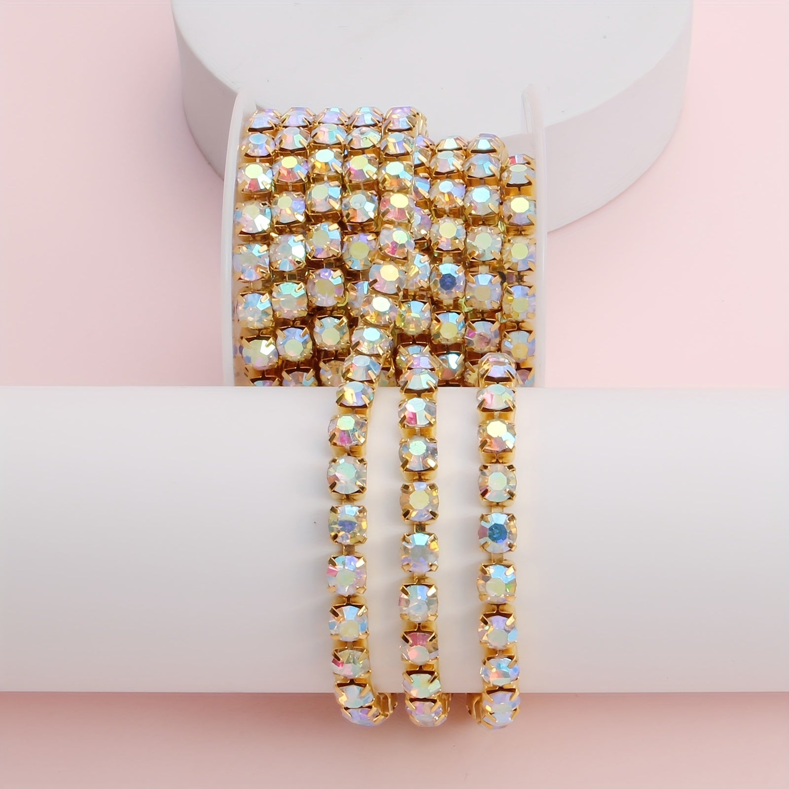 This sparkling AB rhinestone chain is perfect for decorating shoes and other DIY accessories. Add a touch of elegance and glamour to your creations.