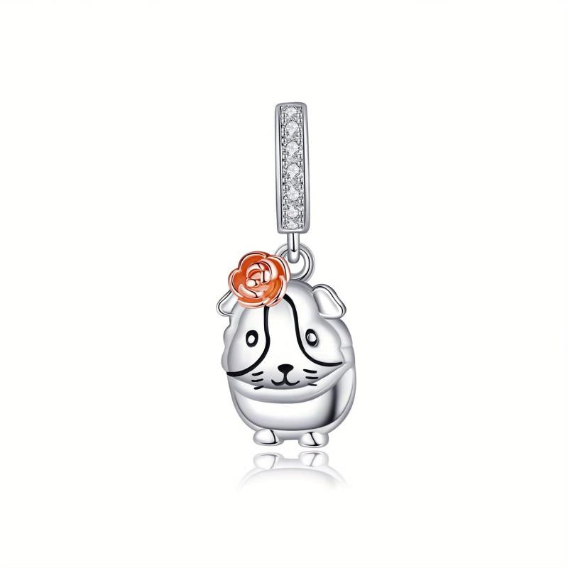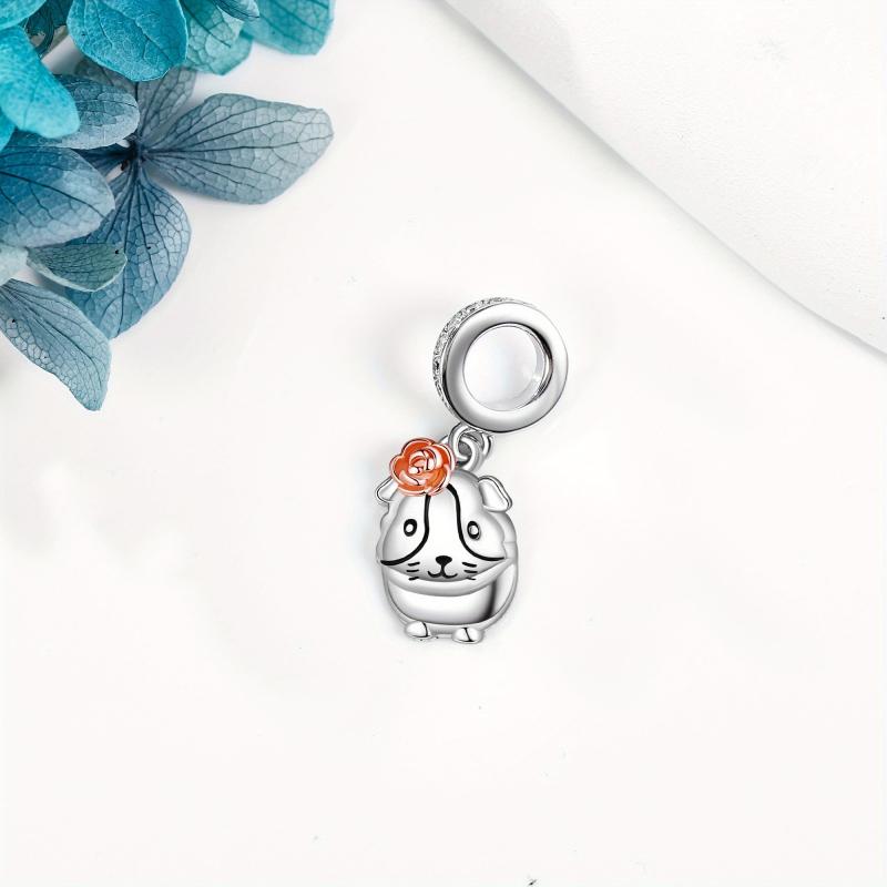 Add a cute touch to your jewelry collection with this sterling silver guinea pig charm bead. Compatible with charm bracelets and necklaces, this dangle pendant is a must-have for guinea pig lovers.