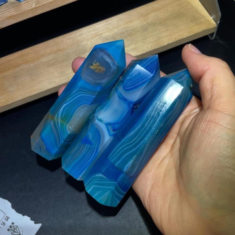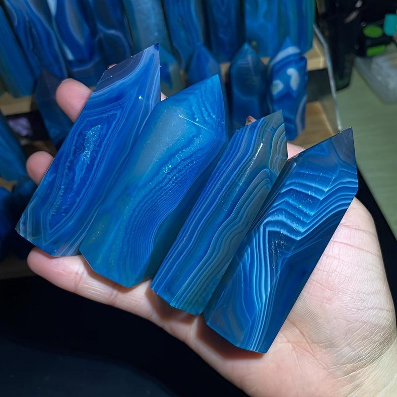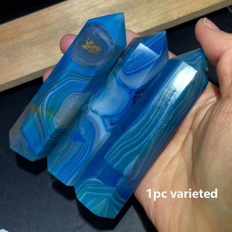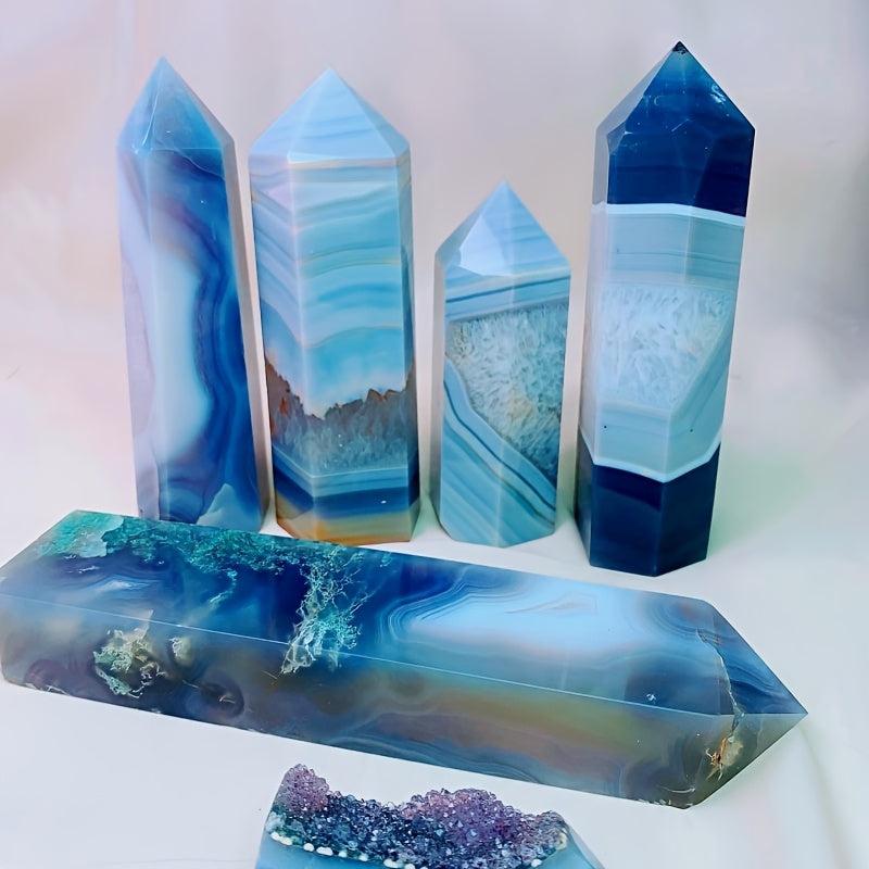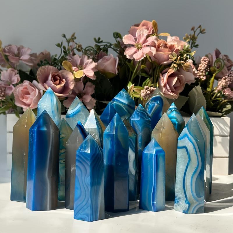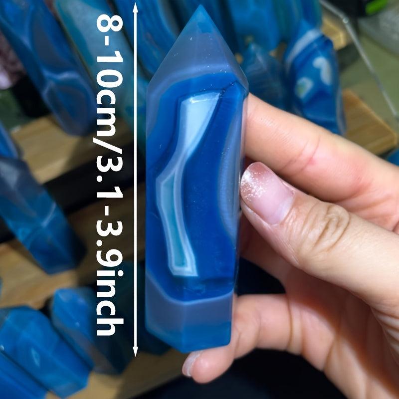 Bring a touch of elegance to your home or office with this stunning Sardonyx Agate Tower. The blue and white stripes make it a unique tabletop decor piece that will enhance any space.